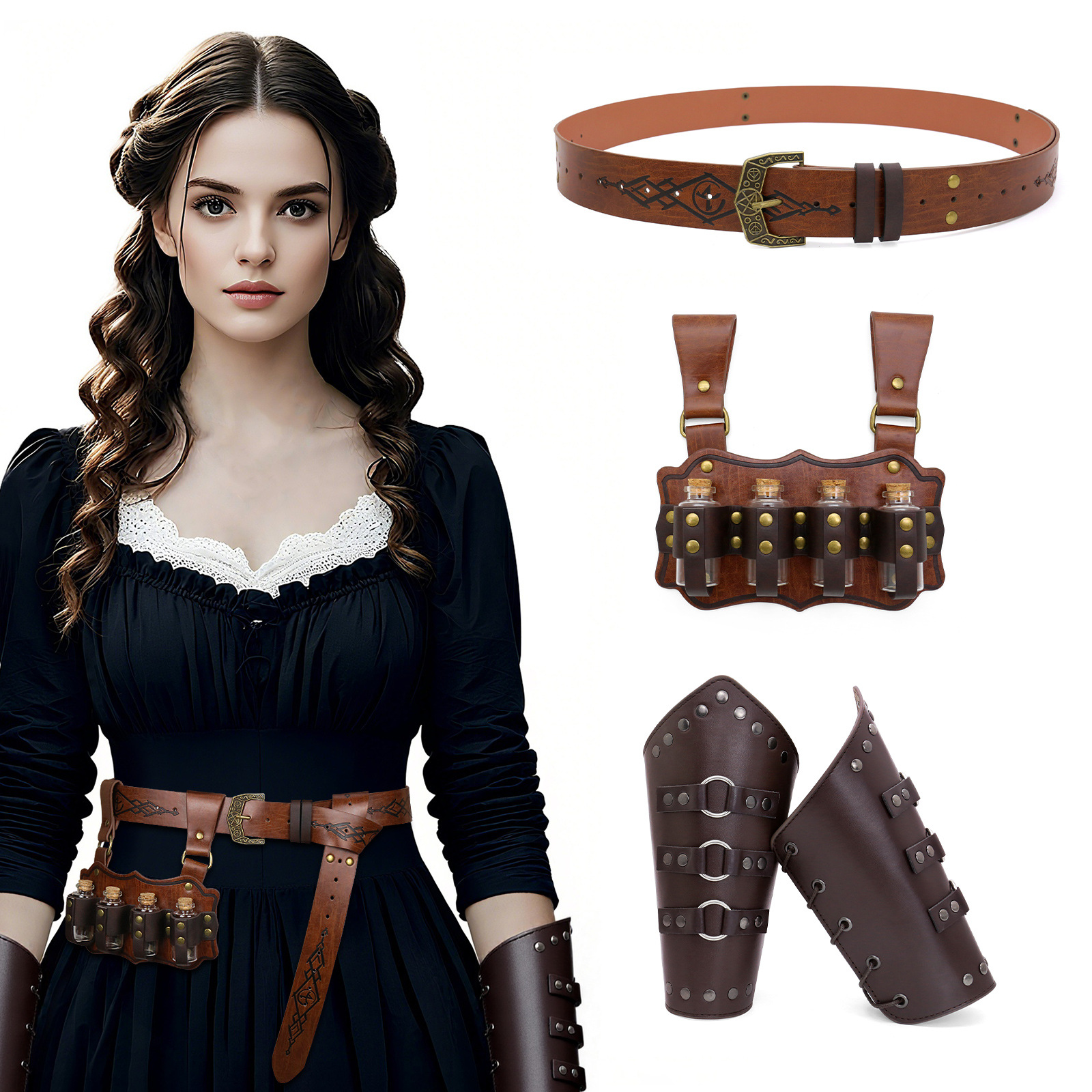 cst140br (brown belt + four alchemy bottles + one pair of hoop wristlets)