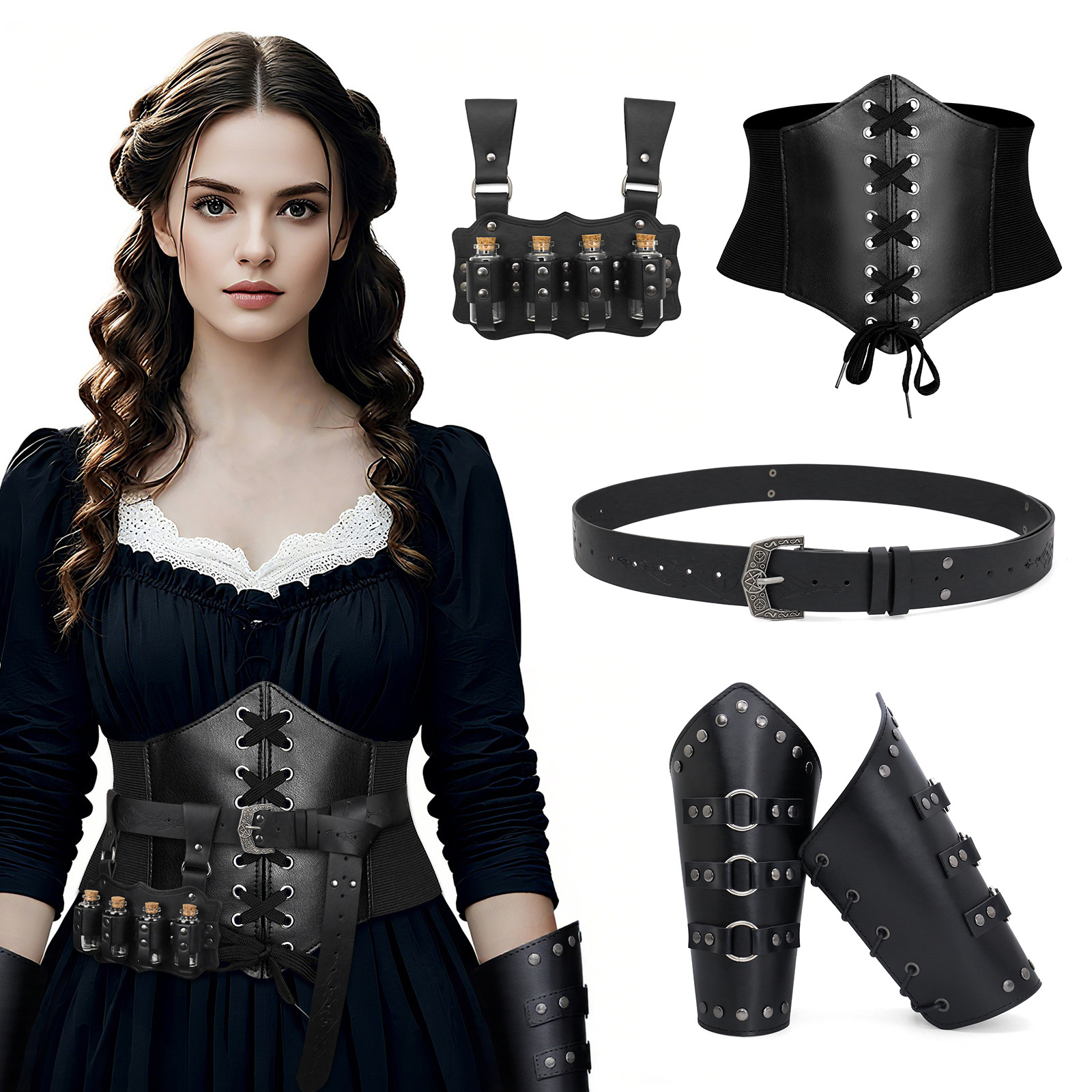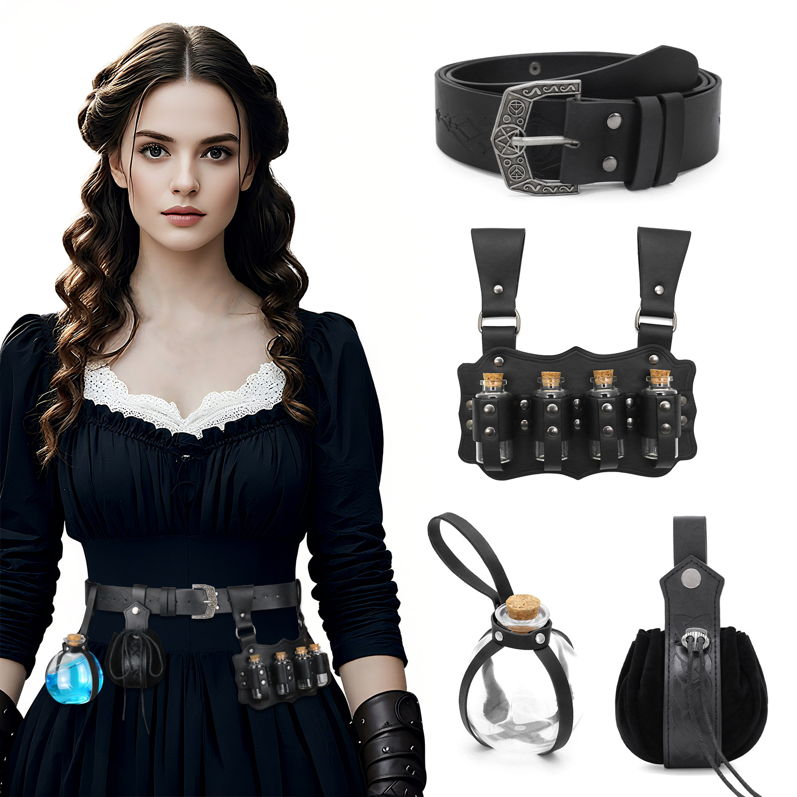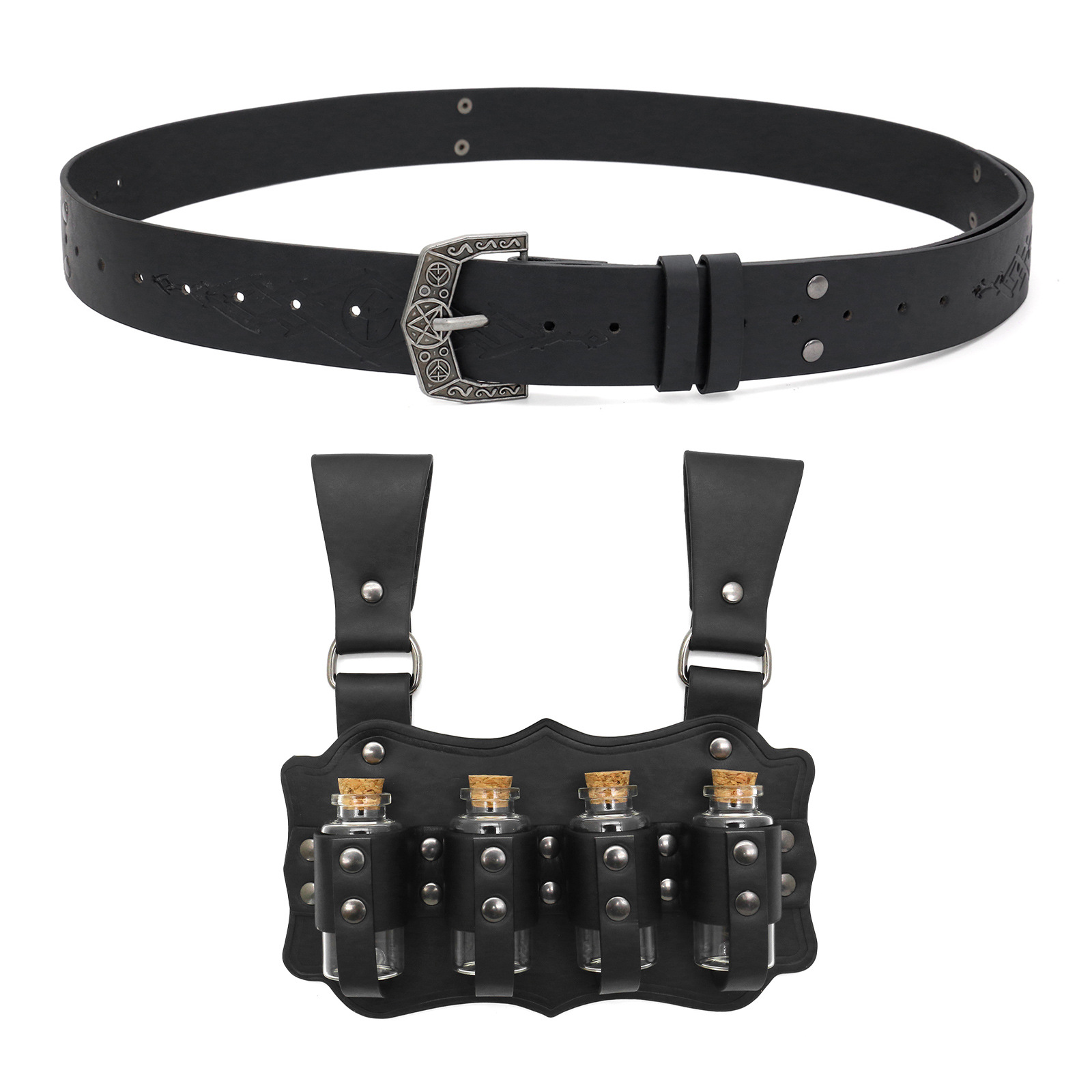 cst148bk (black belt + four alchemy bottles + magic bottle + tattooed purse)