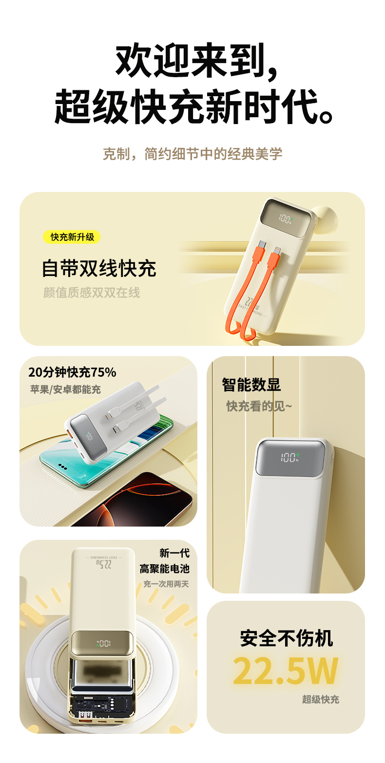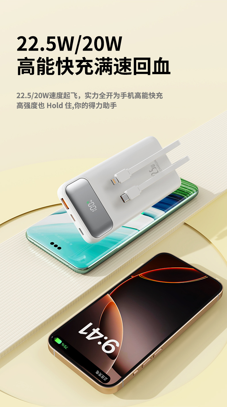 comes with data cable, supports fast charging, power digital display