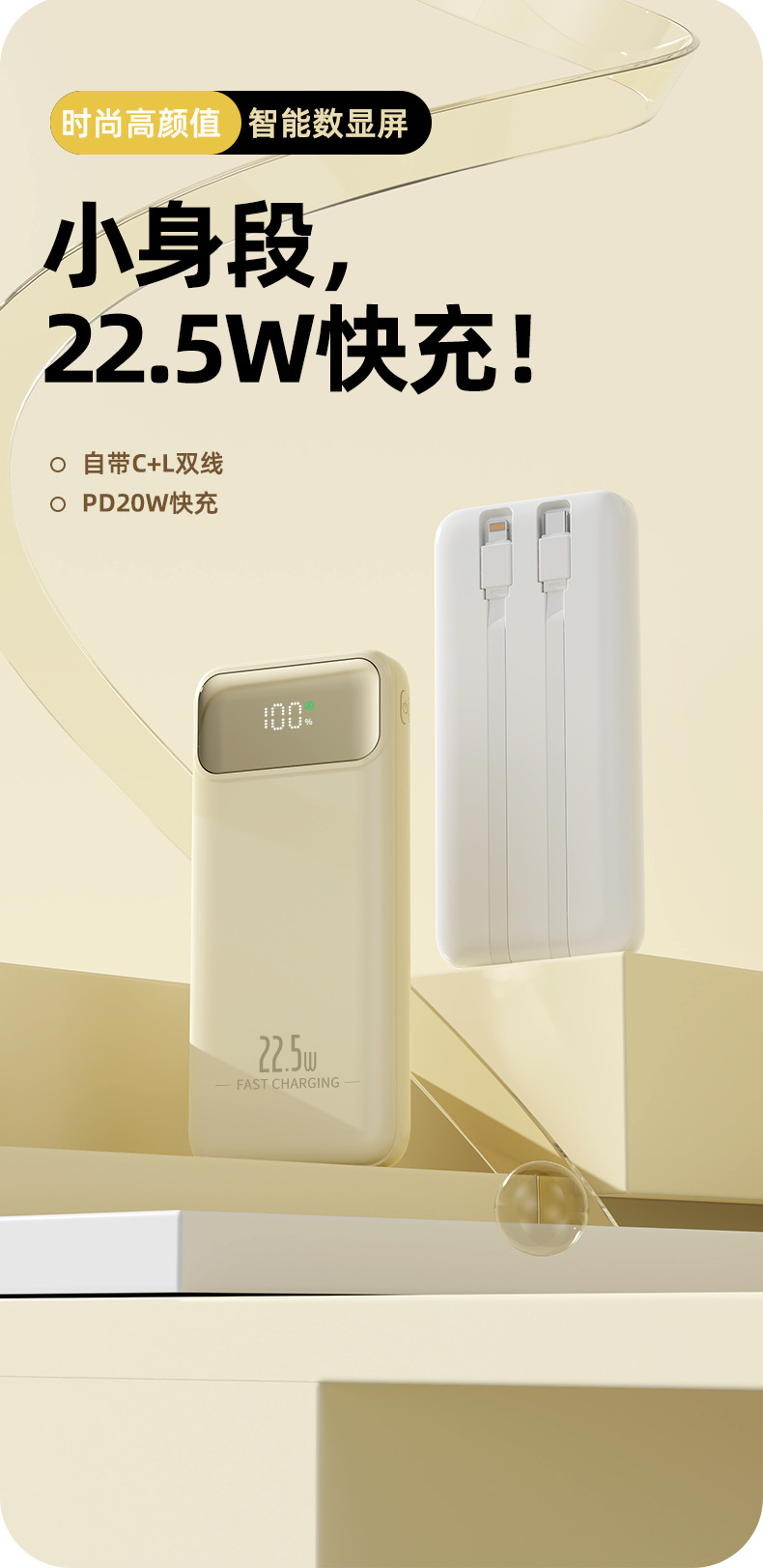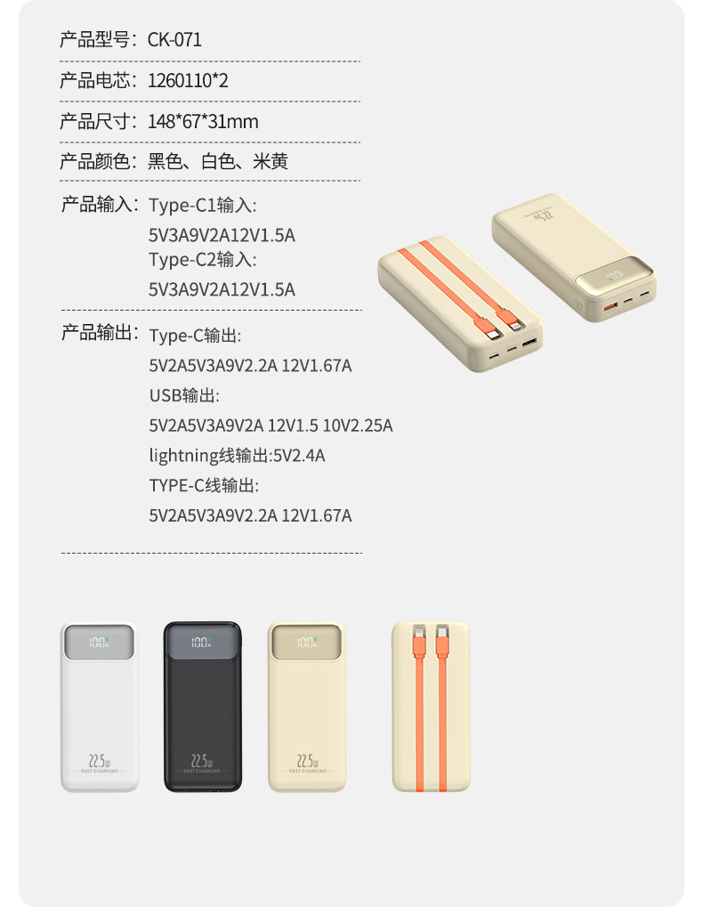 function: comes with data cable, supports fast charging, power digital display