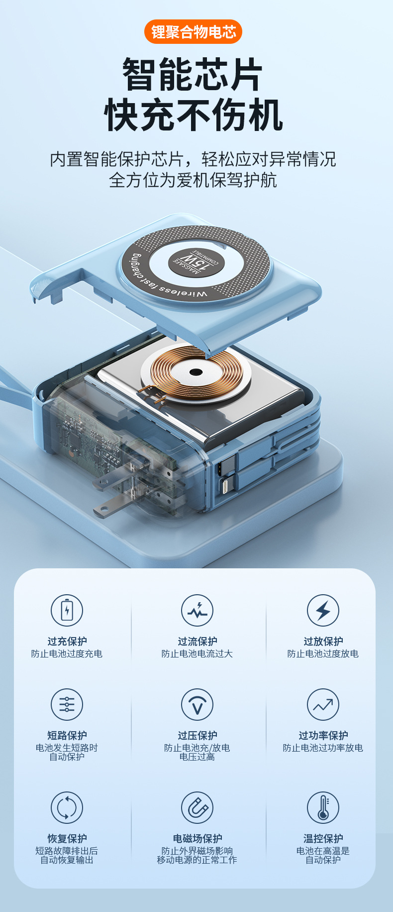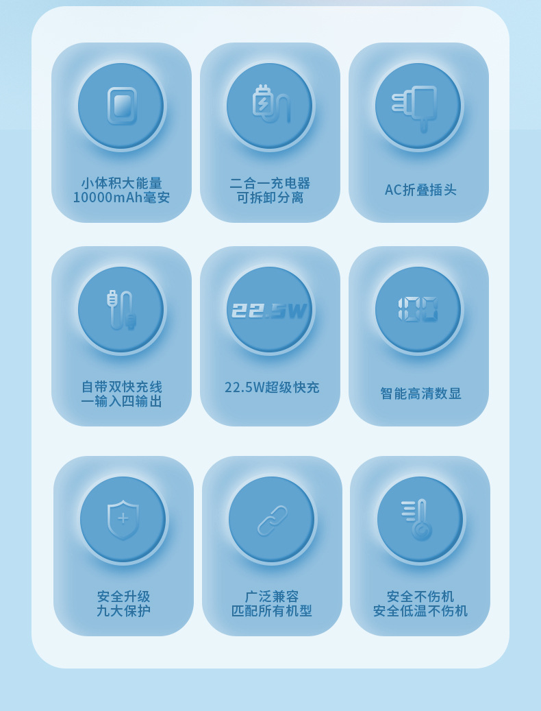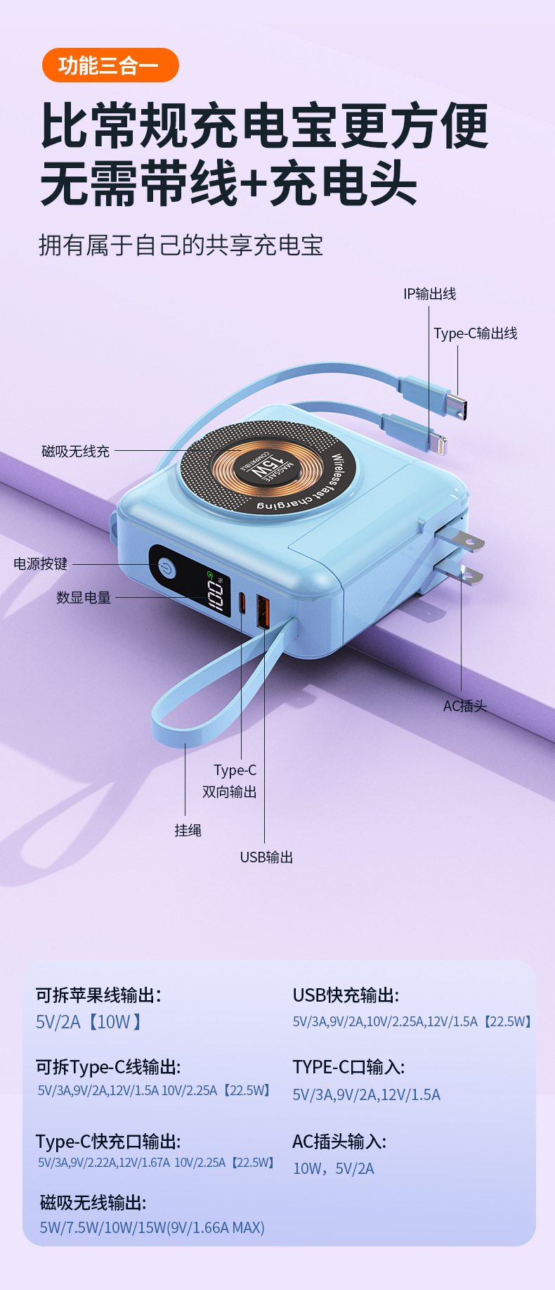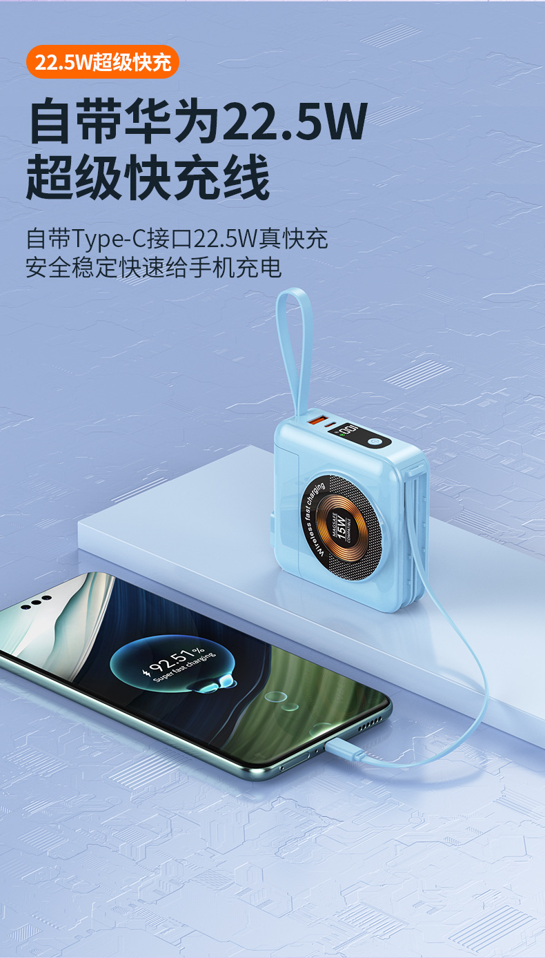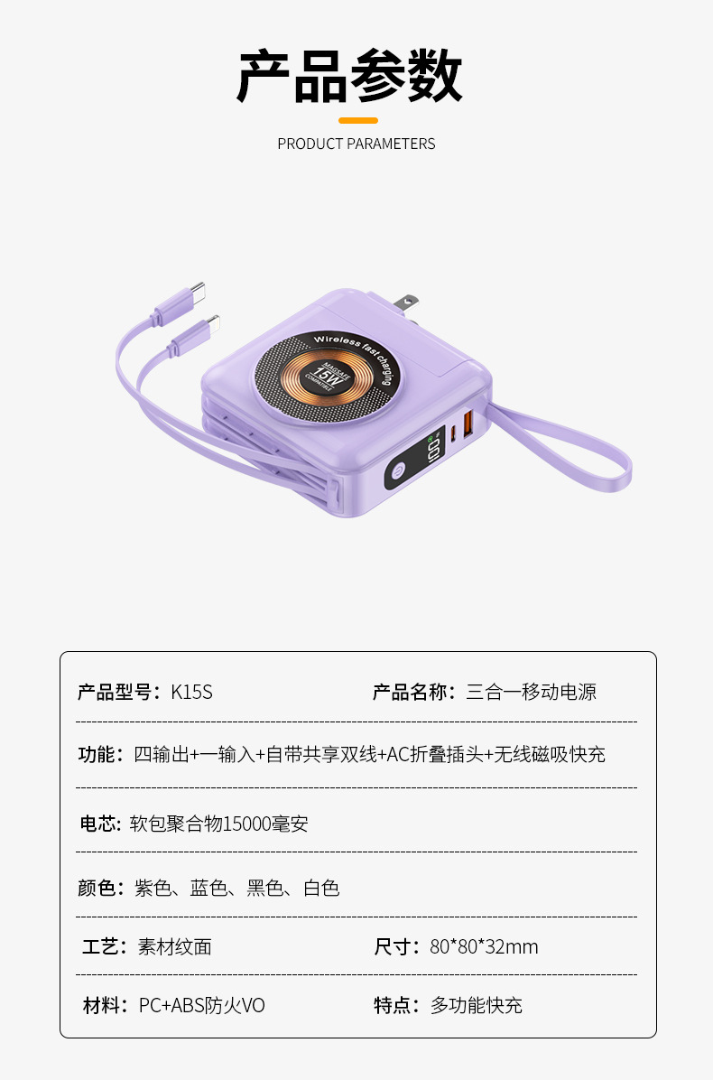 function: comes with data cable, supports fast charging, power digital display