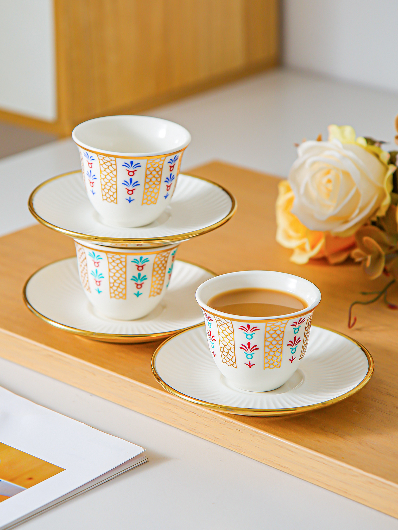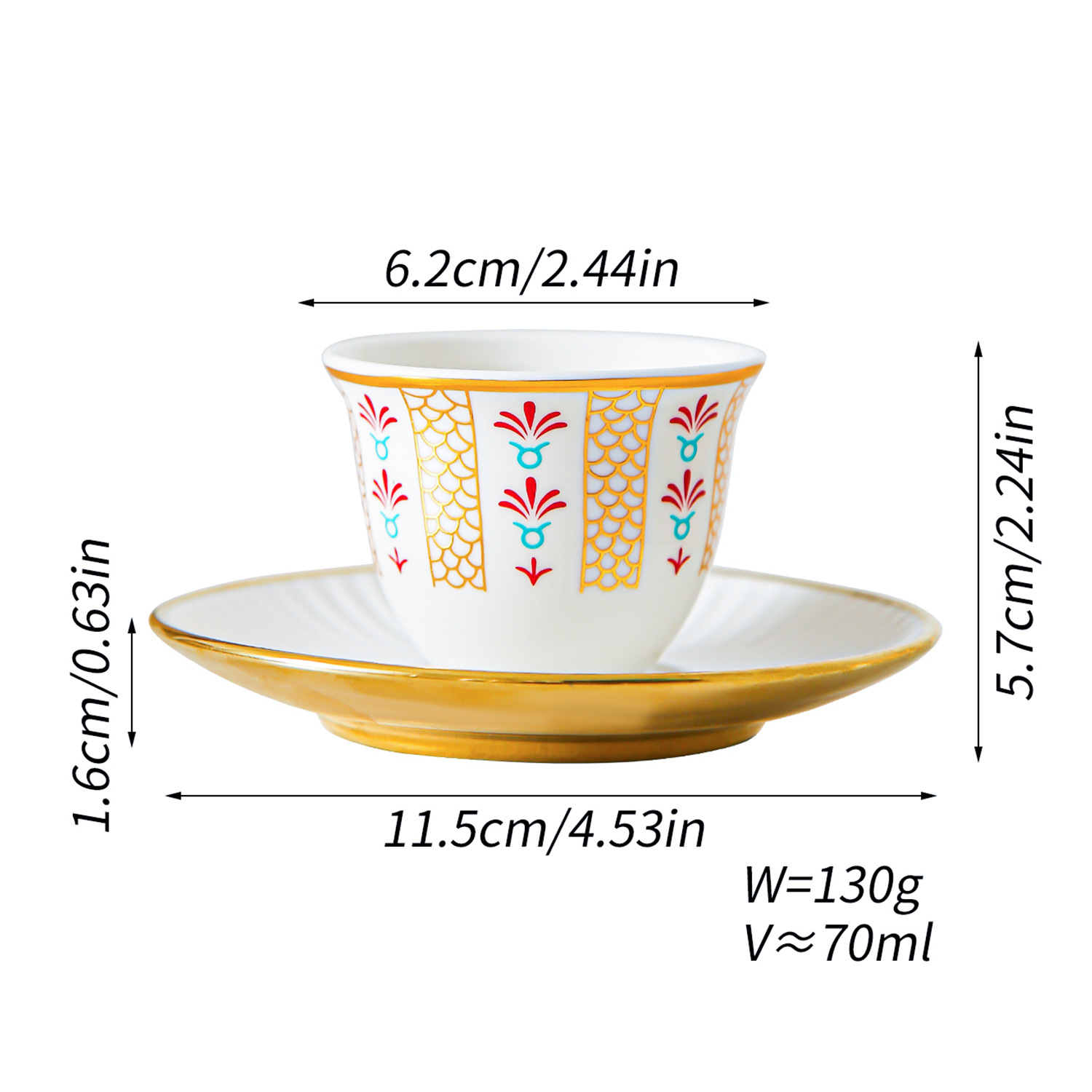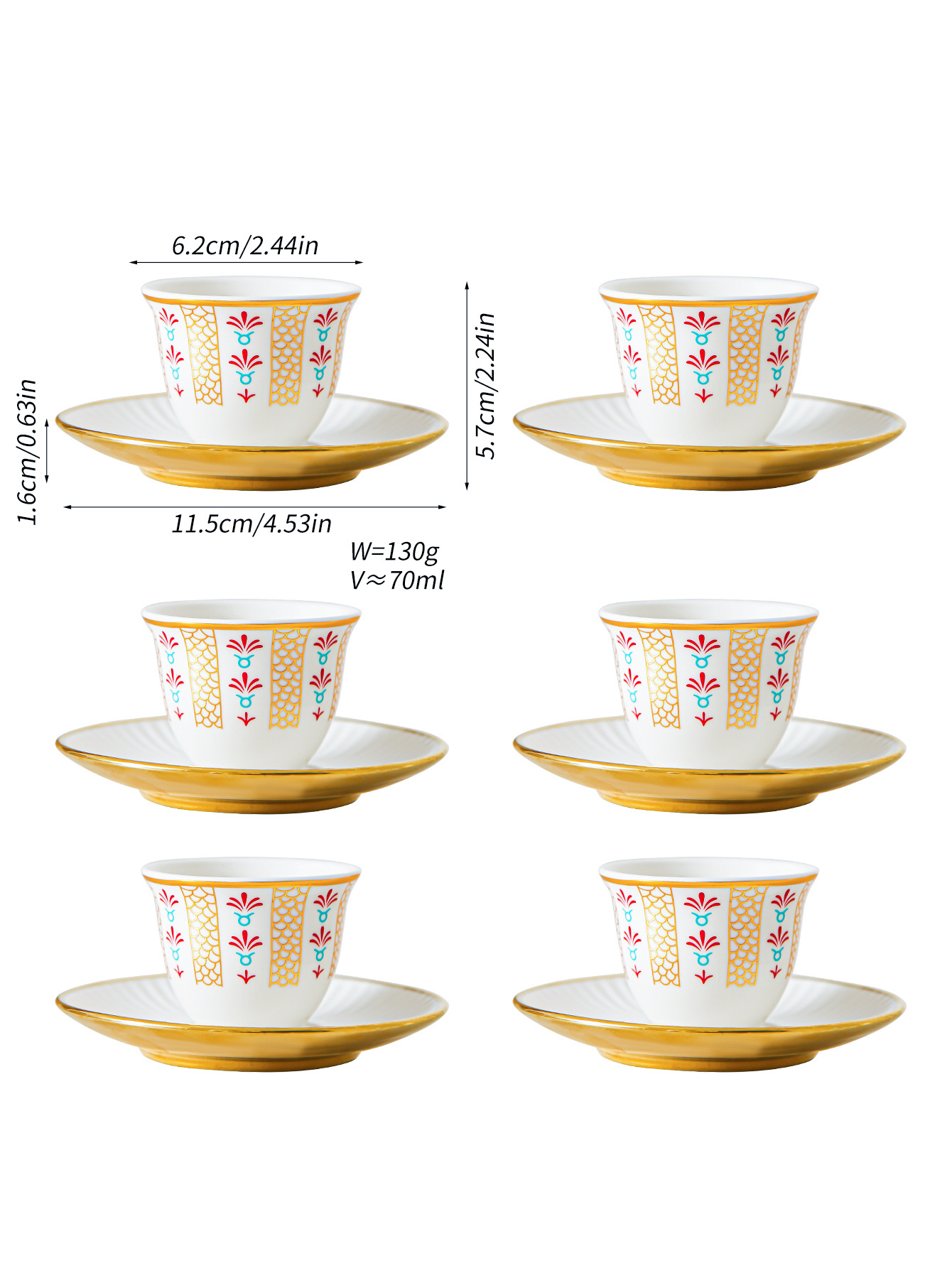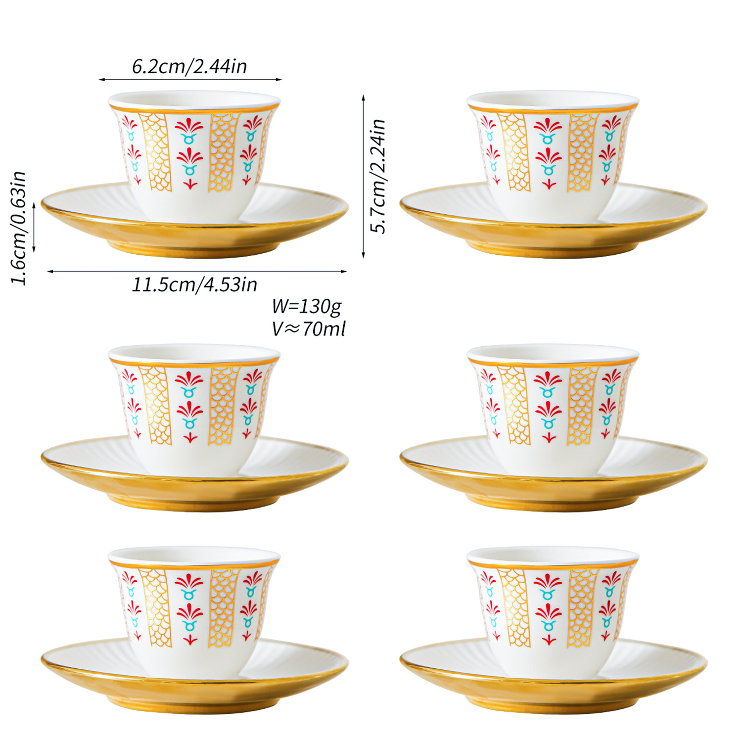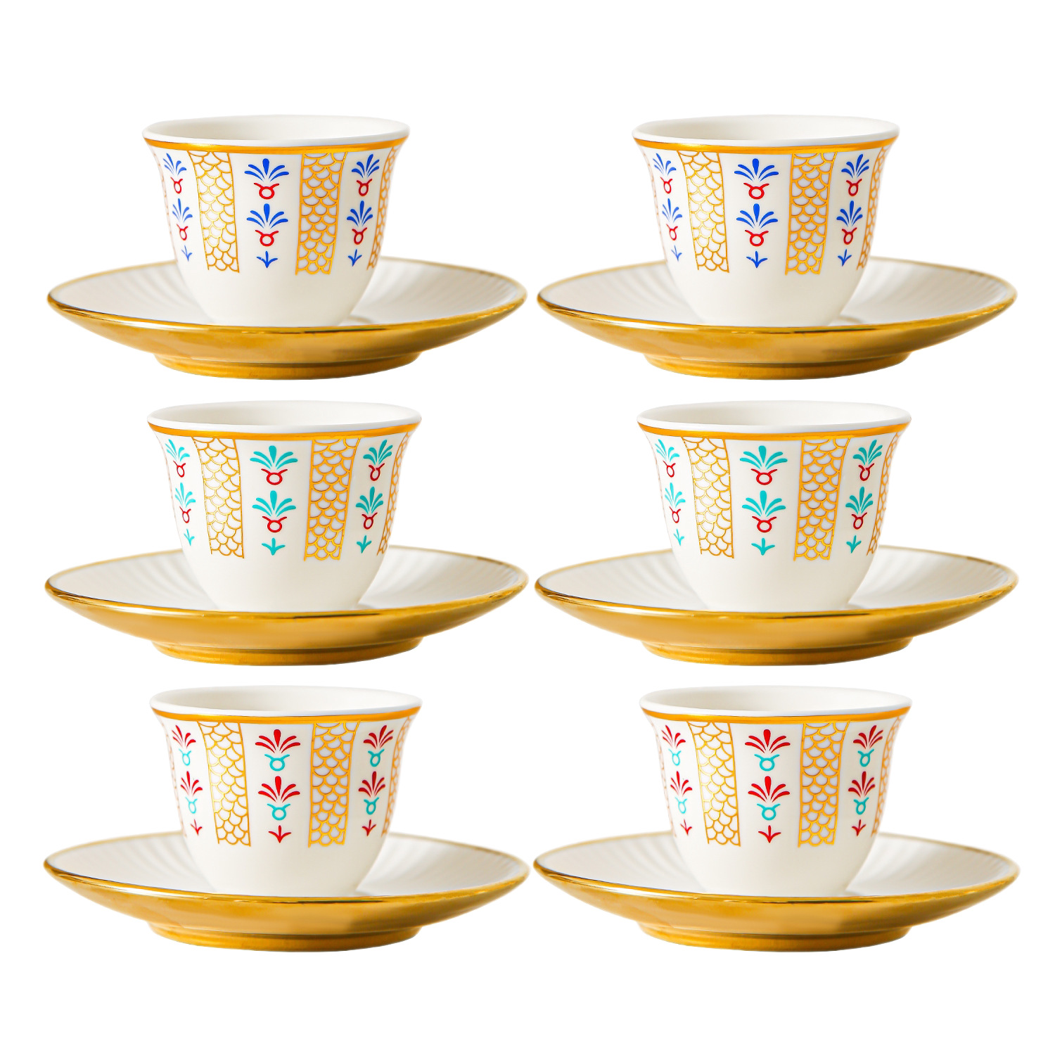 ceramic cup dish-red plain-6 cups 6 dishes