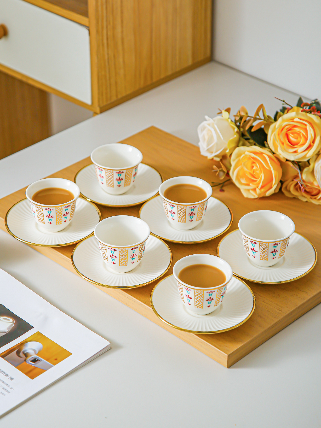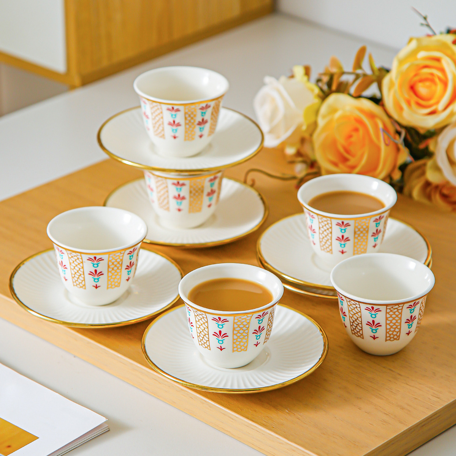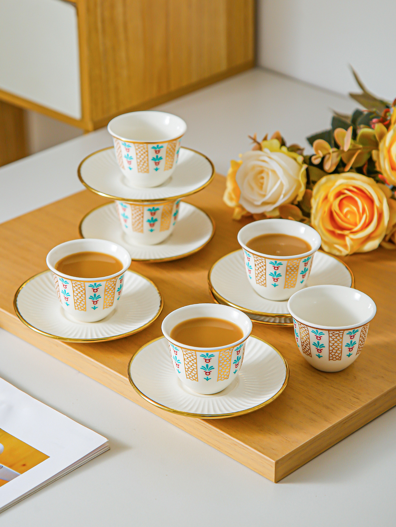 ceramic cup dish-green pigment-6 cups 6 dishes