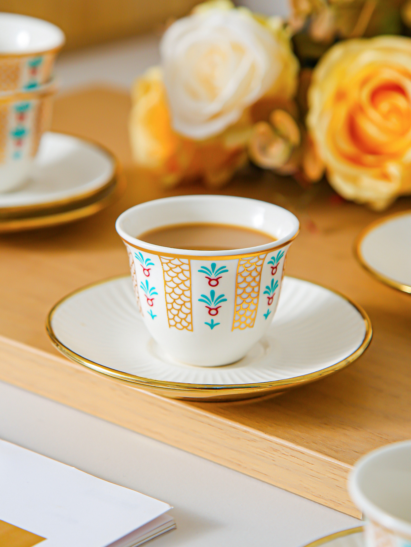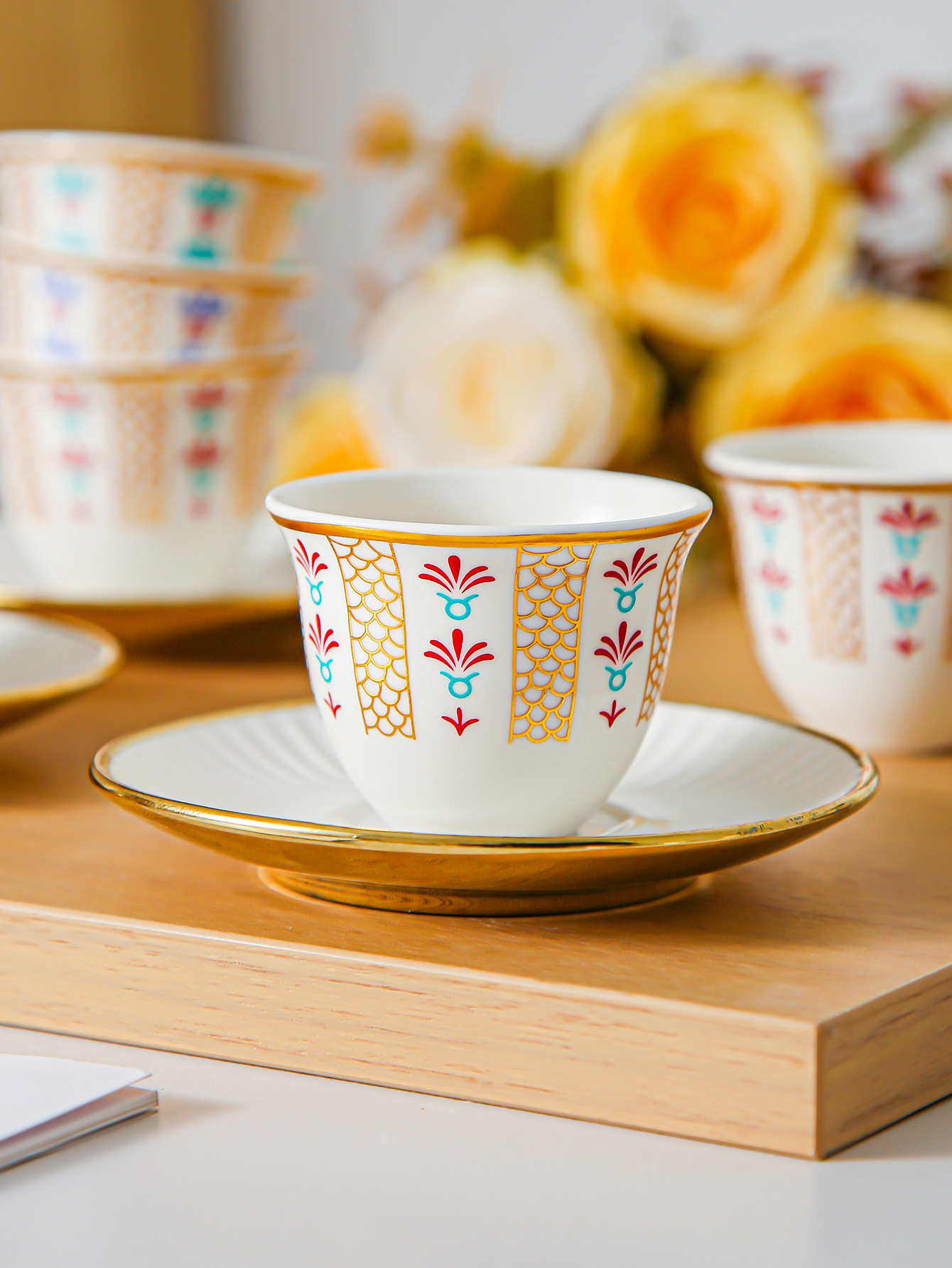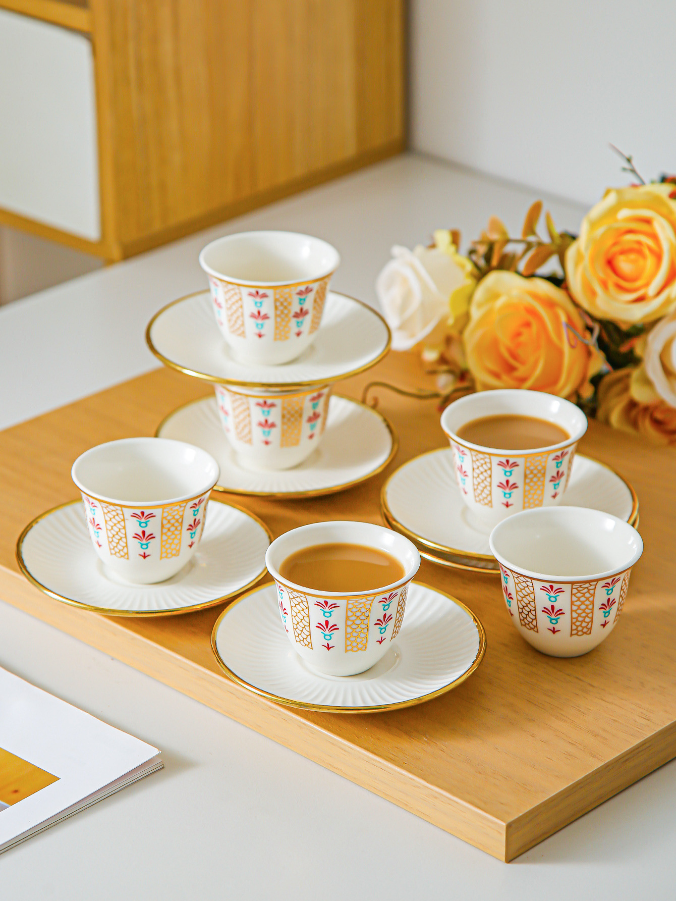 ceramic cup dish-green pigment-6 cups 6 dishes