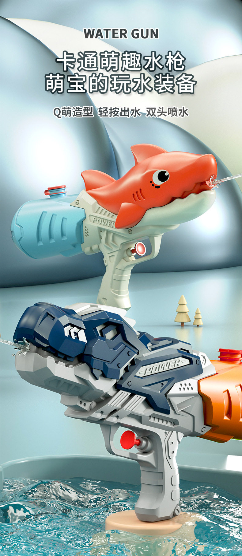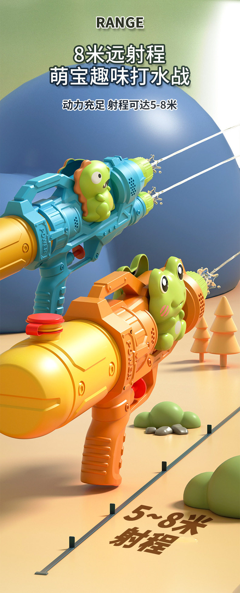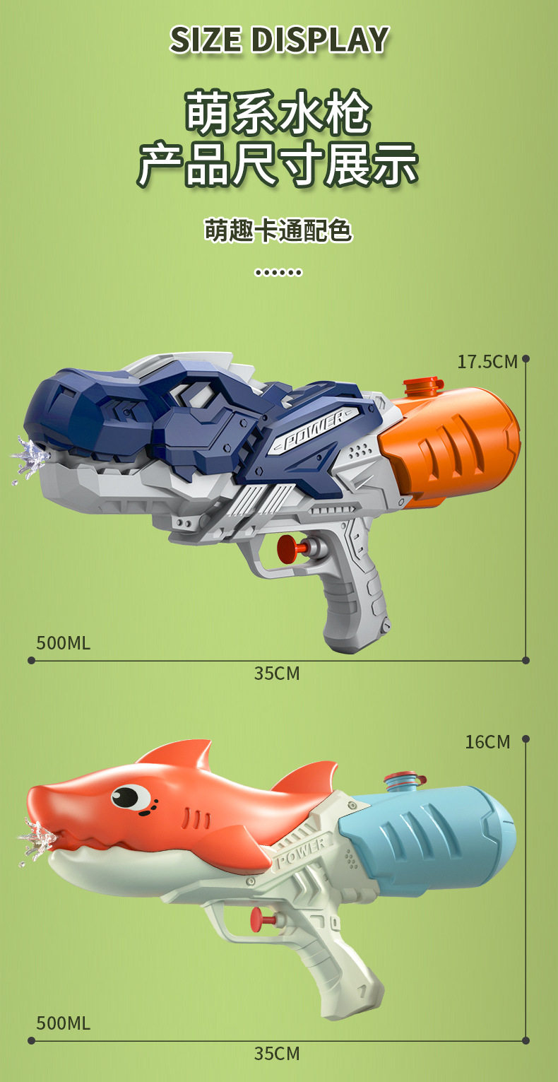 [dual nozzles 500ml] dinosaur water gun-blue