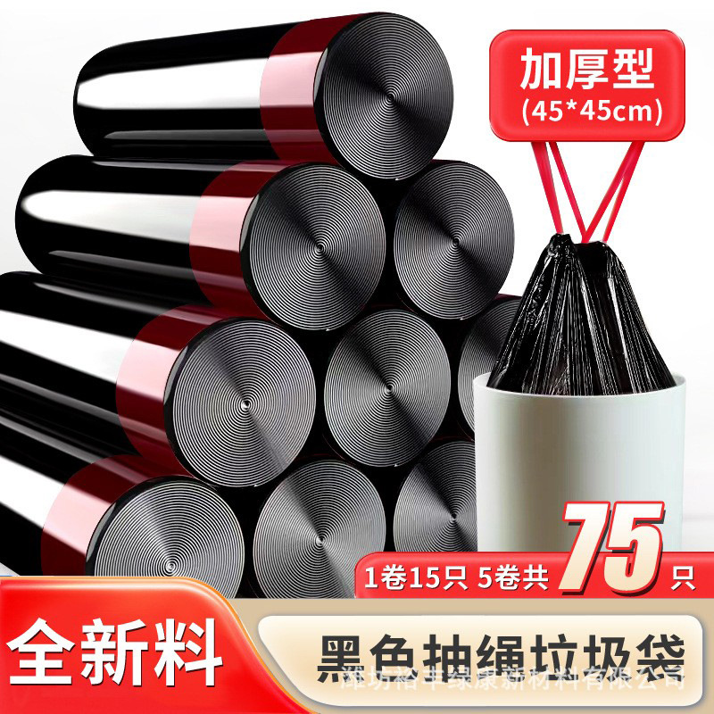 black drawstring bags, 5 rolls, 75 pieces per pack