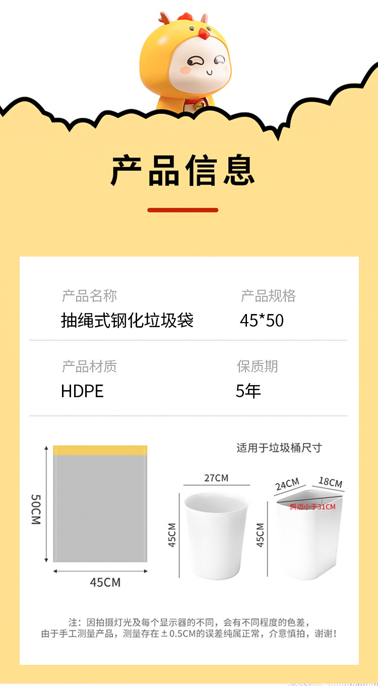 black drawstring single roll, 50 pieces