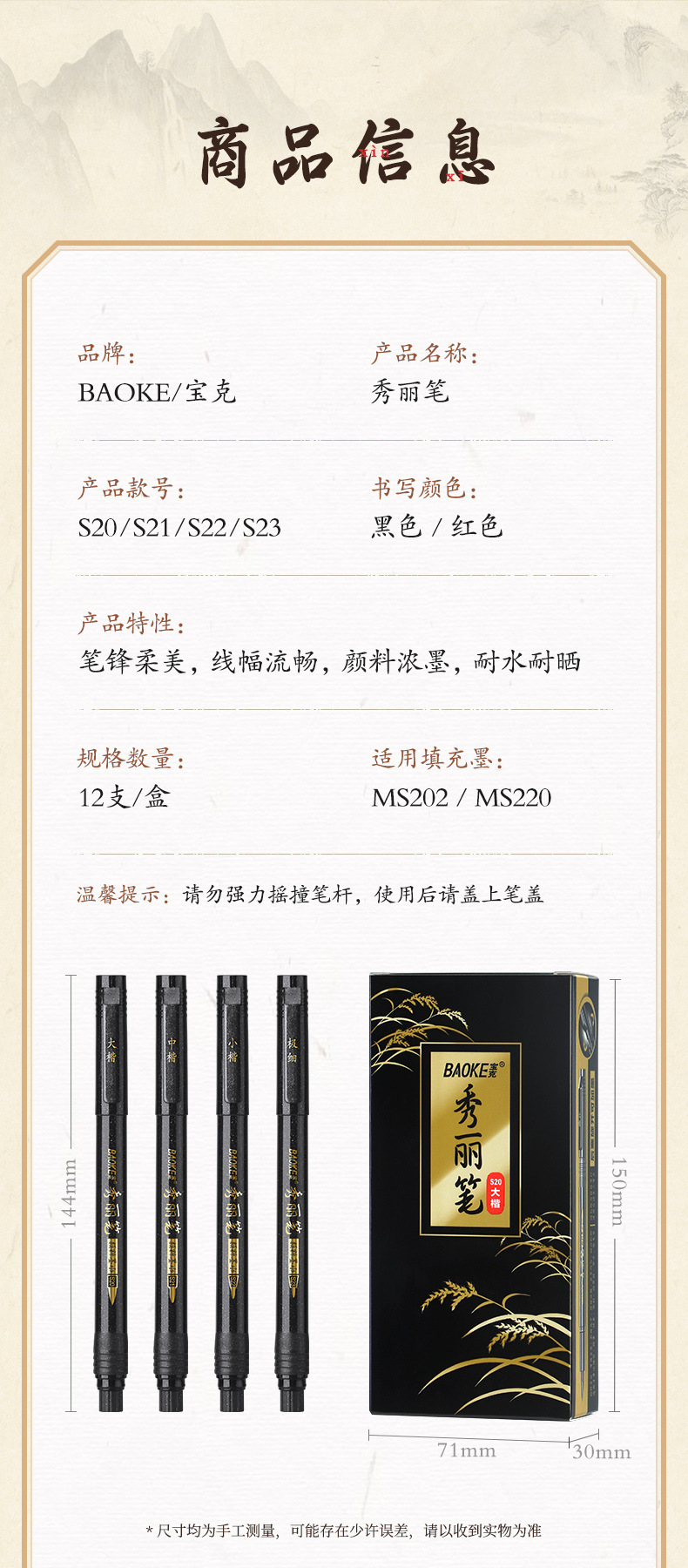 s21 medium regular script calligraphy pen