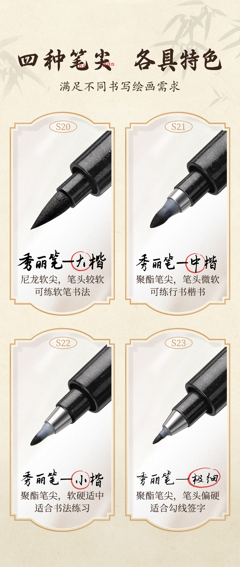 s009 set [large, medium, small, and ultra-fine four calligraphy pen suit]]