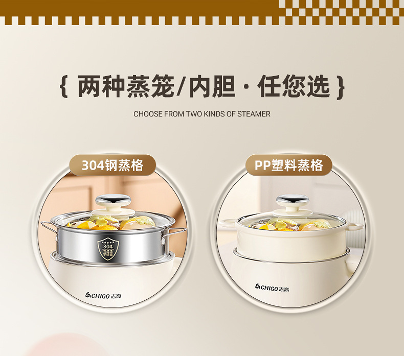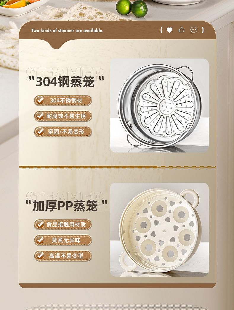 304 stainless steel inner liner + pp steamer tray