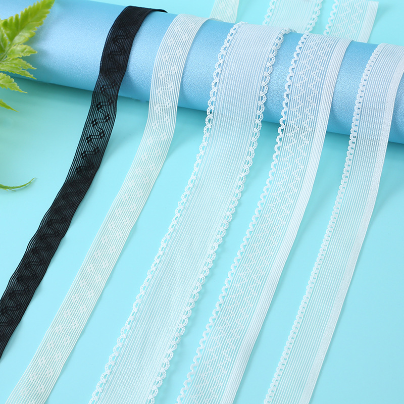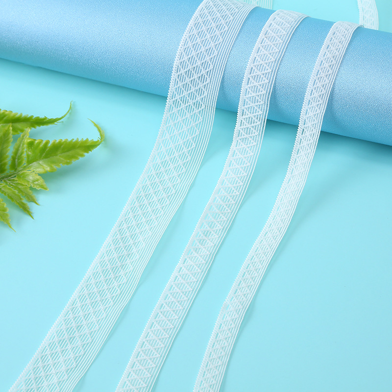 Name: Transparent Fishnet Lace Elastic Edge Band Specification: 1.0-2.5cm Color: Custom color available Material: Nylon Spandex Usage: Wedding dress wristband jewelry decoration, elastic fabric belt for trousers clothing accessories. |
