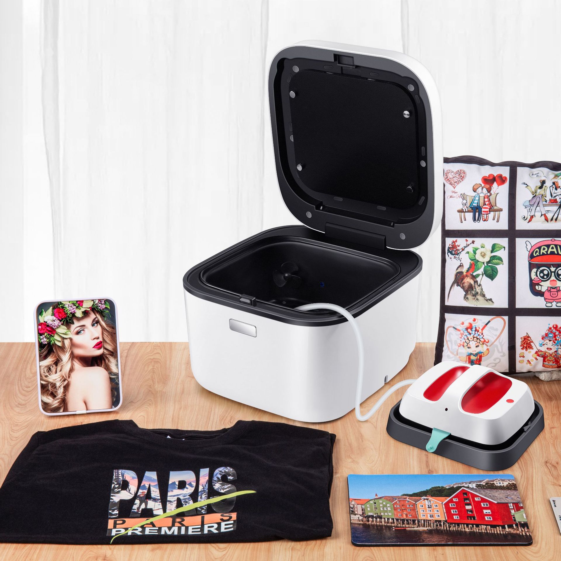 Function: The brand new vacuum transfer machine can print on: mugs, aluminum pots, vacuum insulated bottles, clothes, phone cases, photo frames, aluminum plates, wood boards, plates, etc.