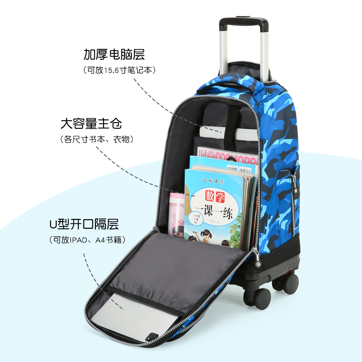 function: waterproof, wear-resistant, anti-seismic, burden-reducing, storage, spine protection, night