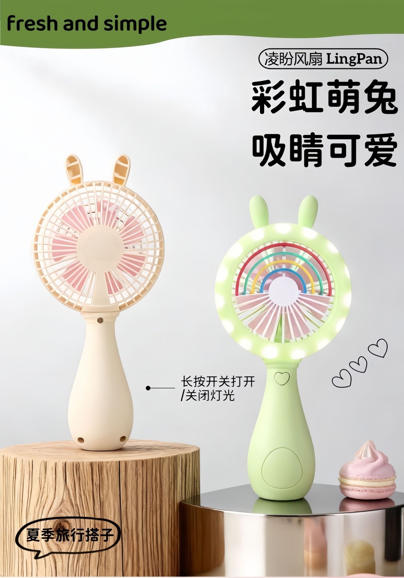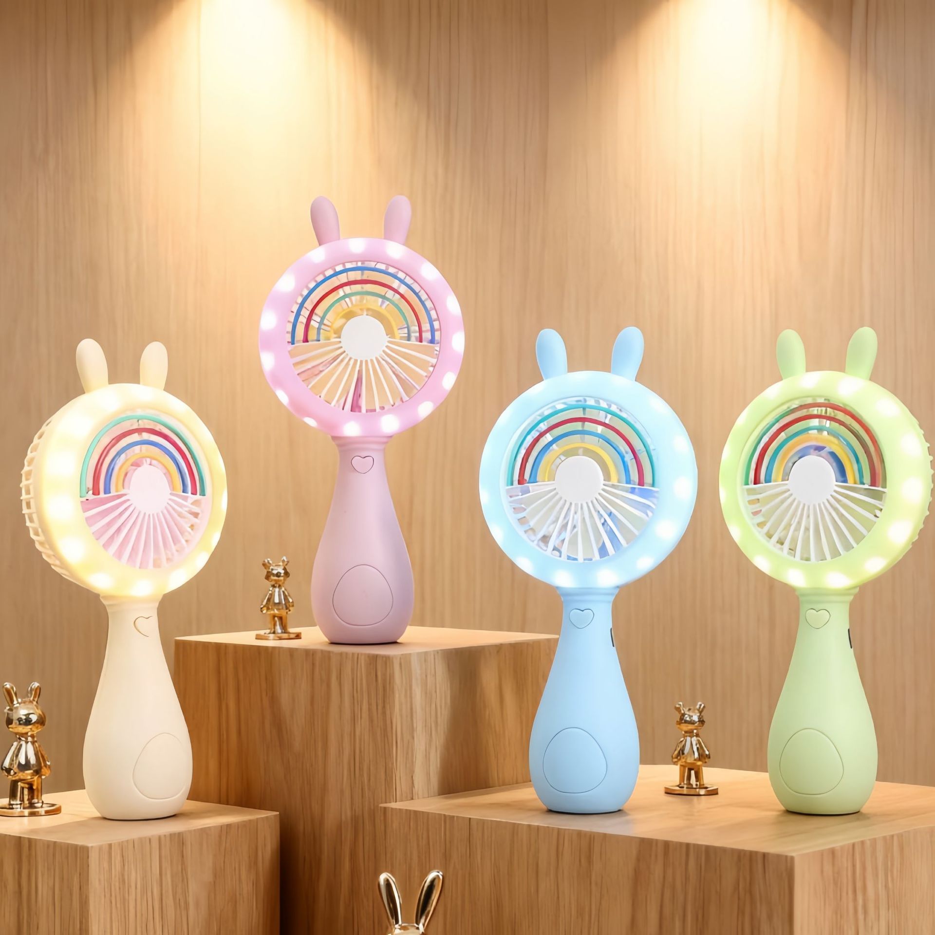 color: pink rabbit light fan, white rabbit light fan, blue rabbit light fan, green rabbit