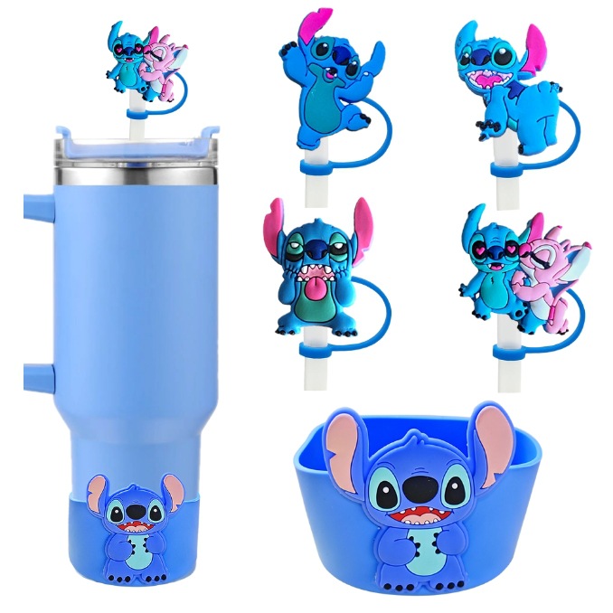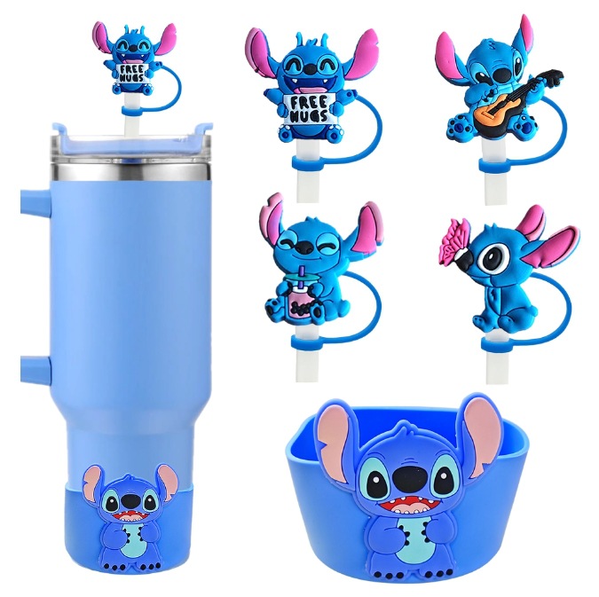 4 straw covers + cup sleeve blue