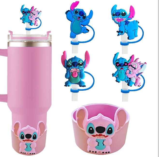 4 straw covers + pink cup sleeve