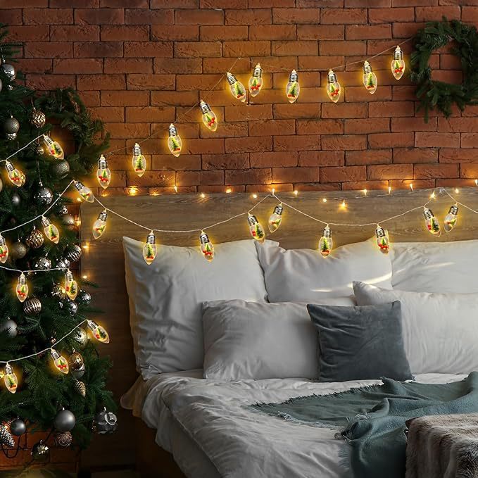 Christmas light strings, desk lamps, tree lights, small tree lights, gift box, snowman light strings