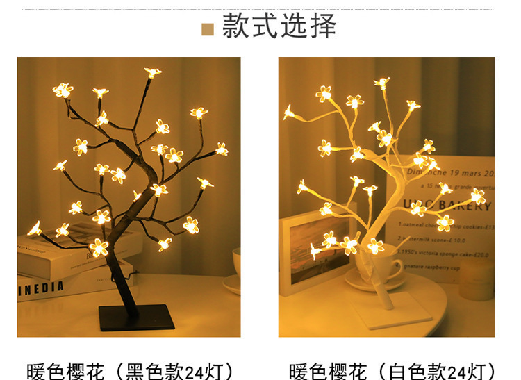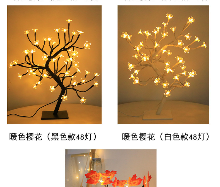 light color: 24 lights-black with sakura tree usb model, 48 lights-black with sakura