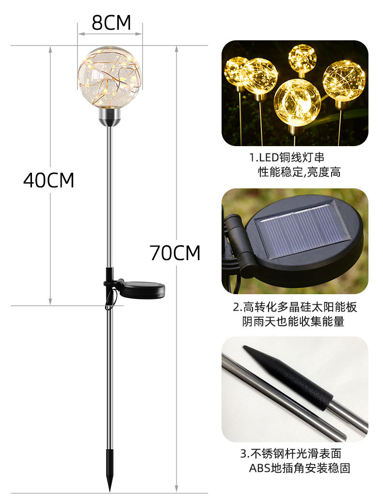 10cm solar-powered copper wire globe ground light