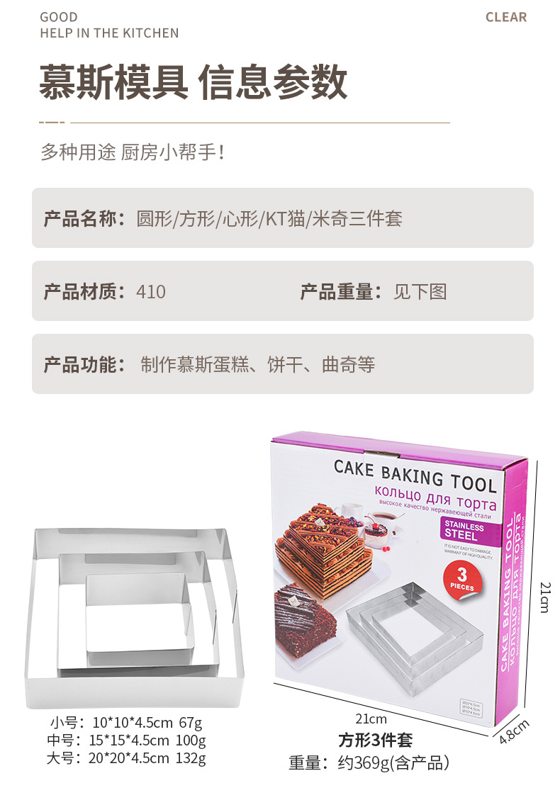 specifications: round 3-piece set, cat head 3-piece set, heart-shaped 3-piece set, square