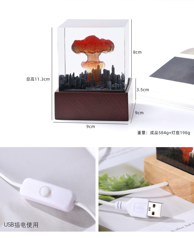 mushroom cloud small night lamp atomic bomb room decoration e-sports desktop ornaments glowing ambience light nuclear explosion