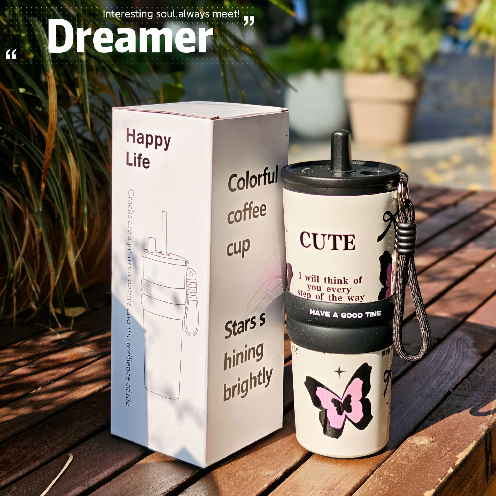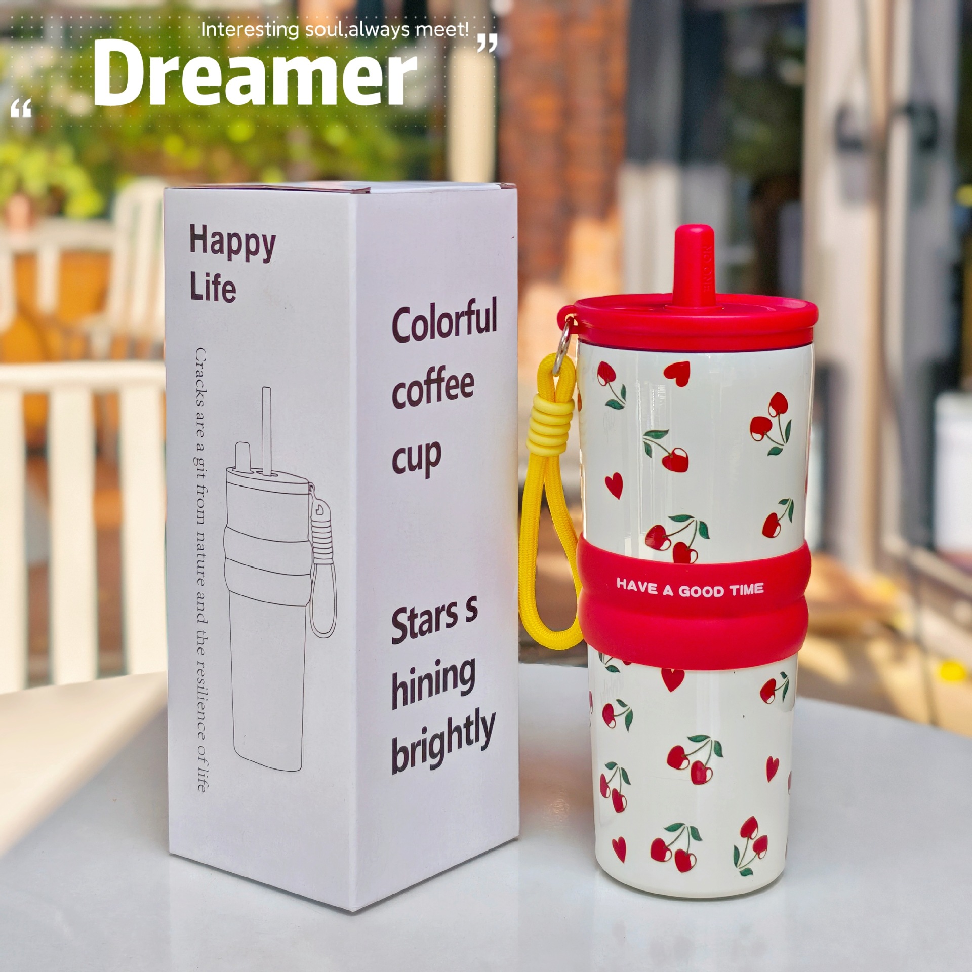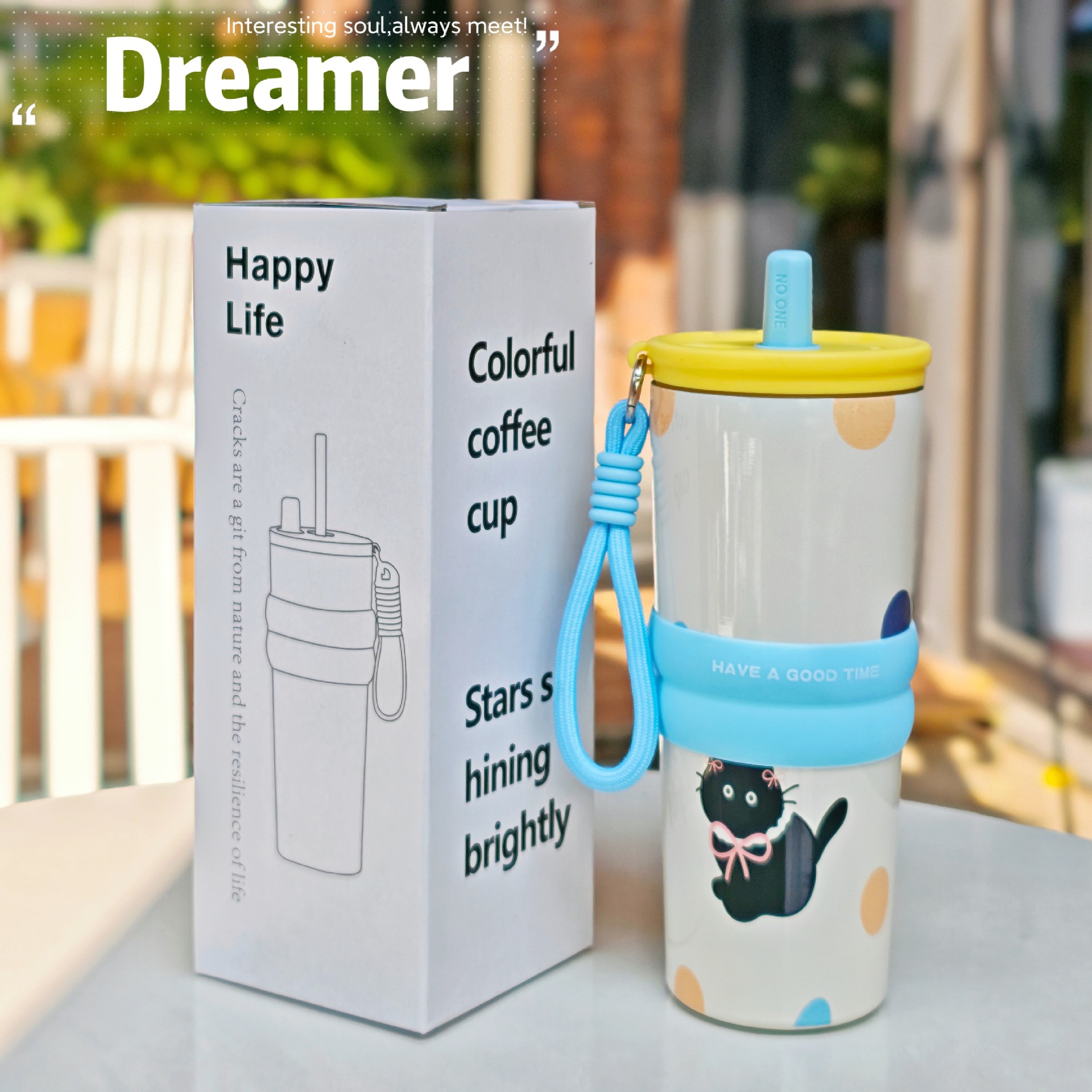 with rope handle, with straw