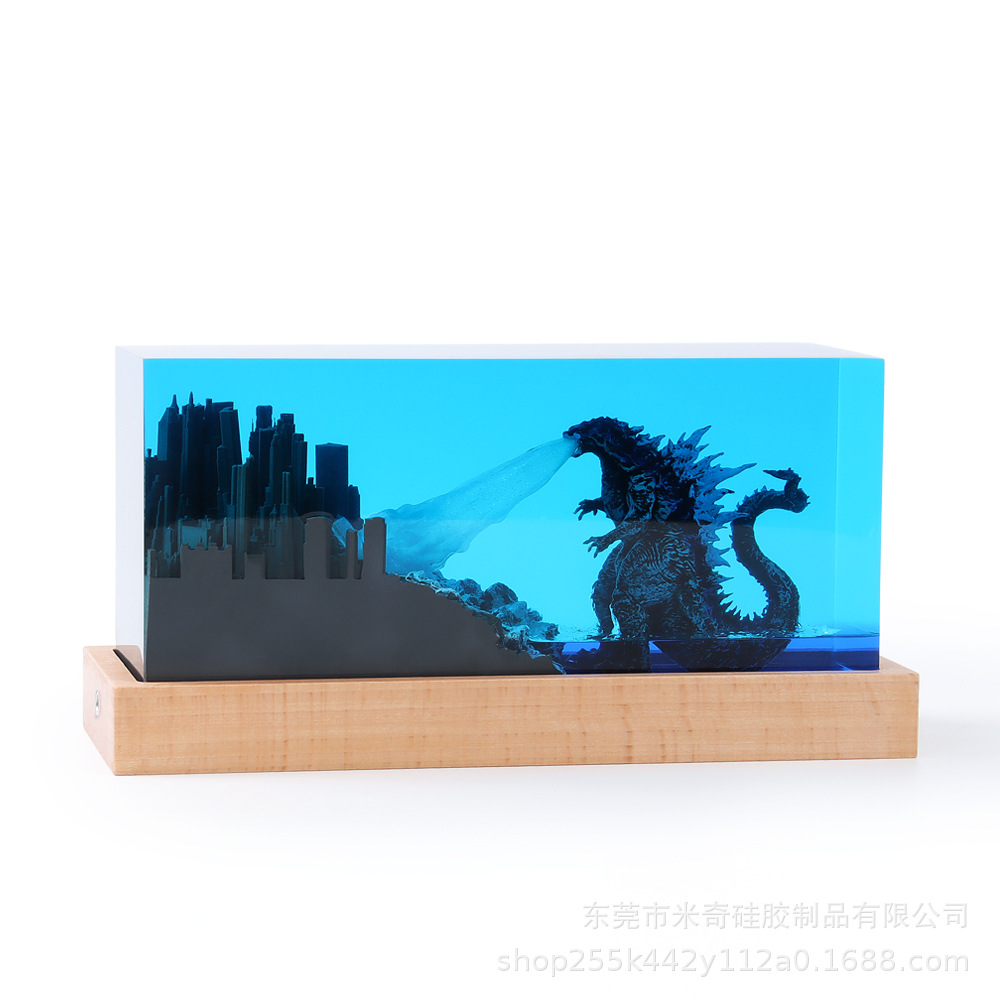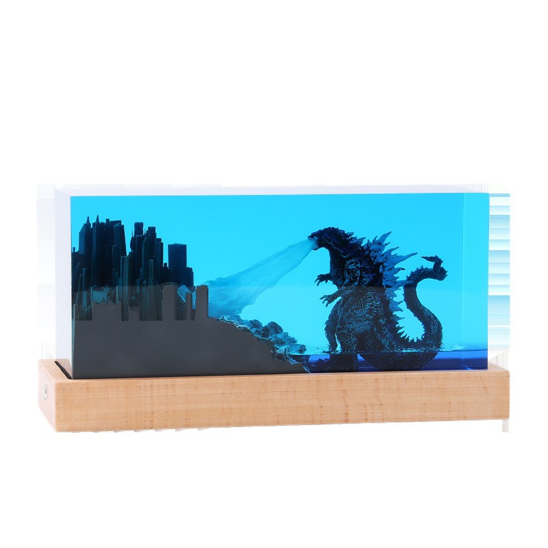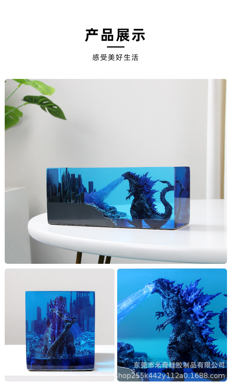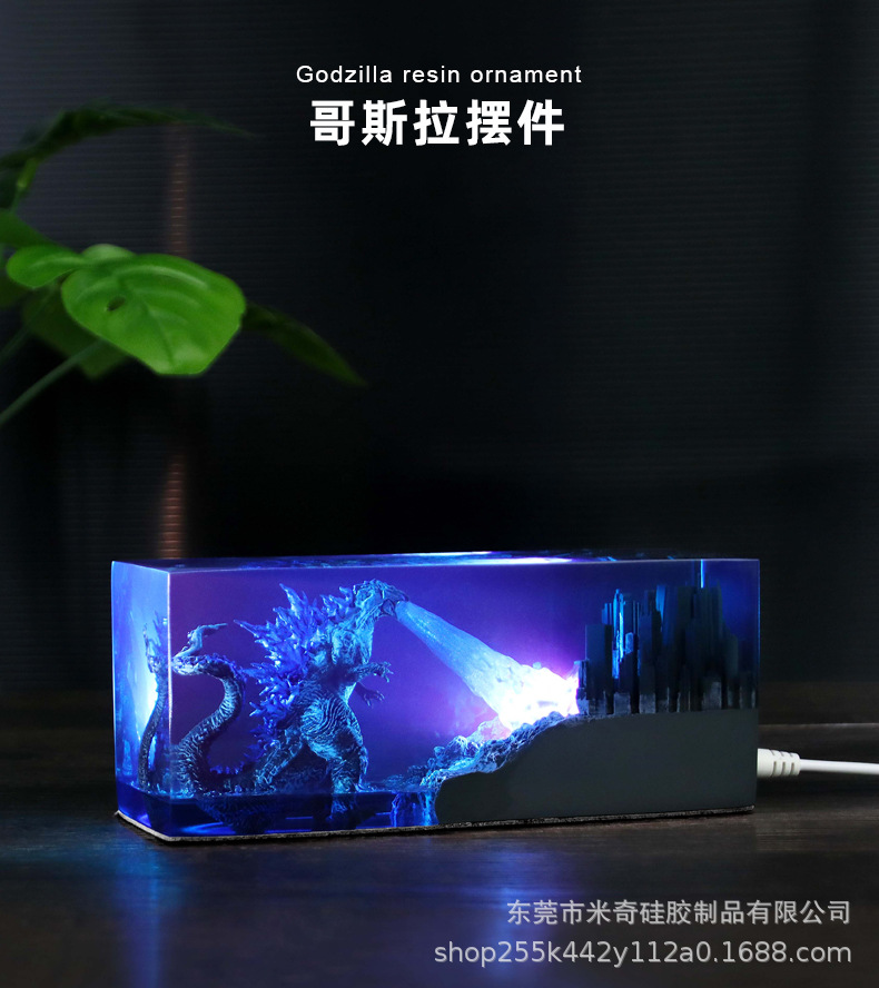 color: godzilla and city (no base), godzilla and city