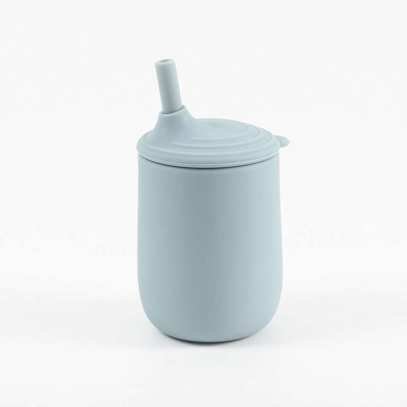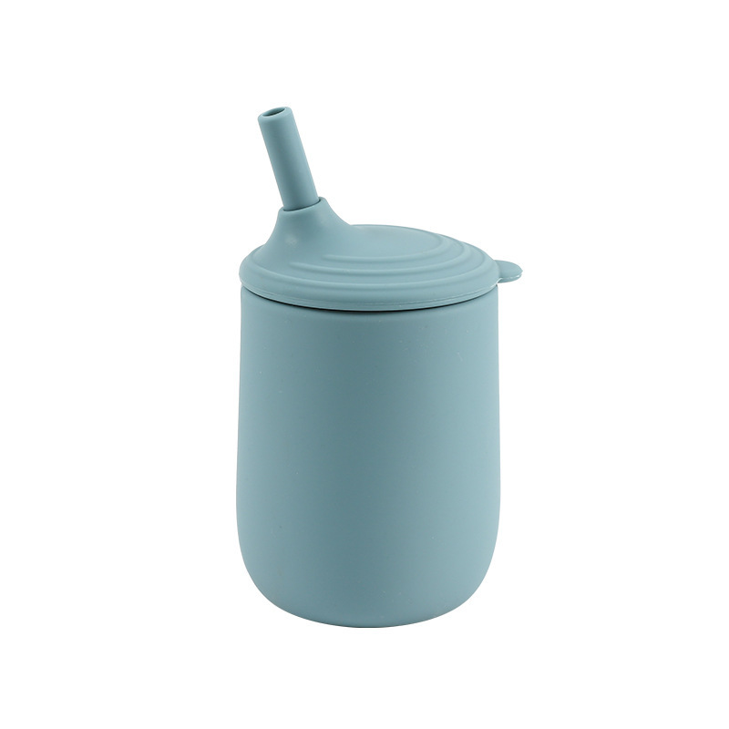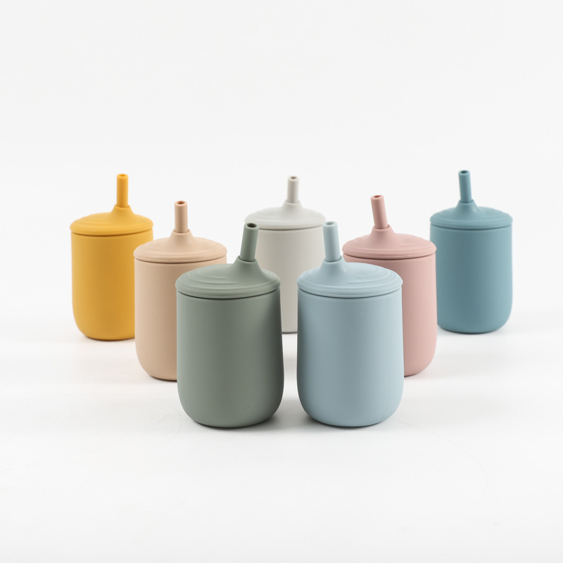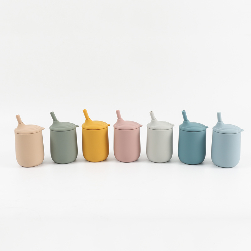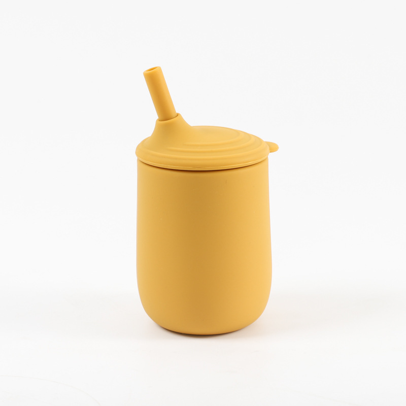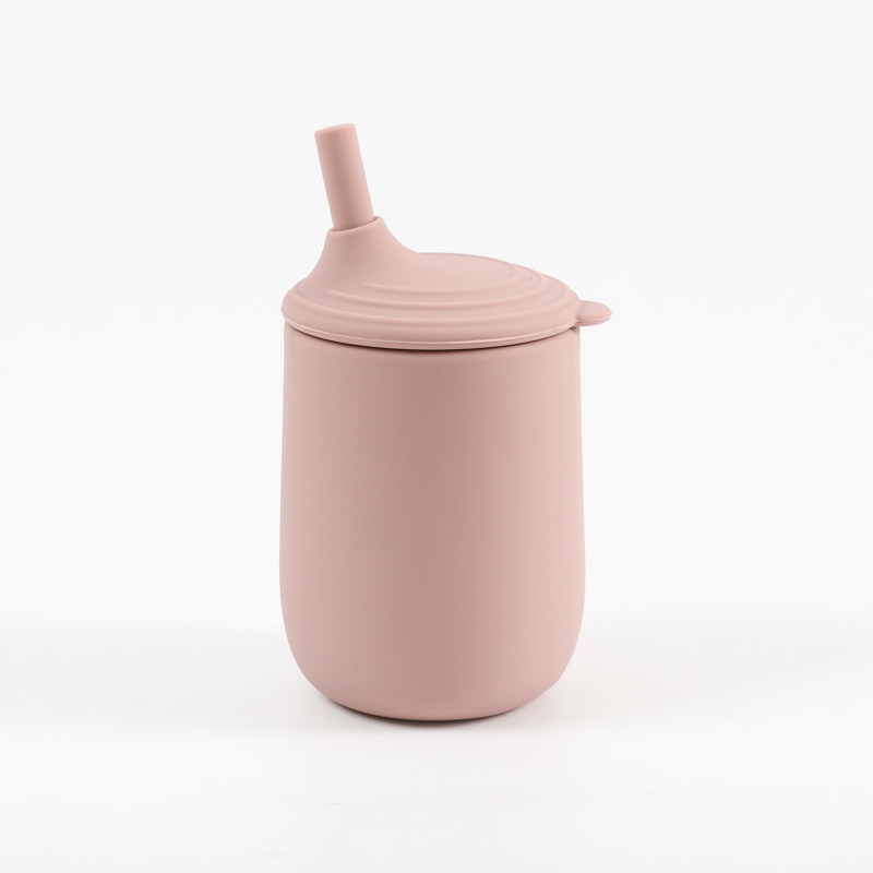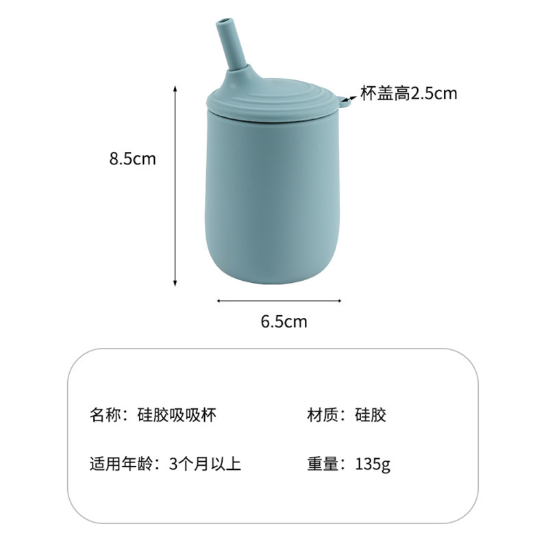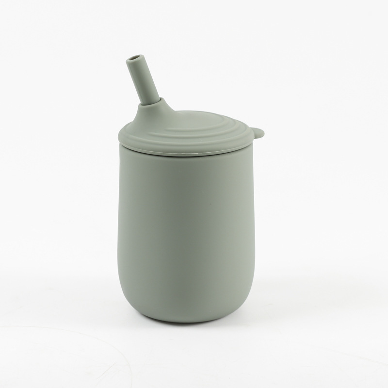 cross-border children's silicone cup with straw leak-proof shatter proof infant no-spill cup nordic toddler training with cover water cup