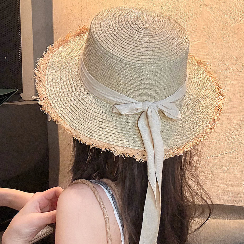 d-322 beige frayed-edge straw hat