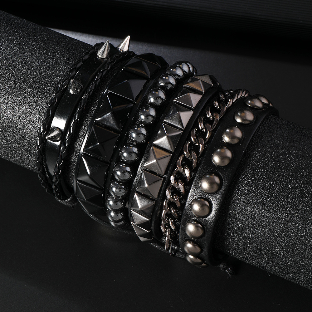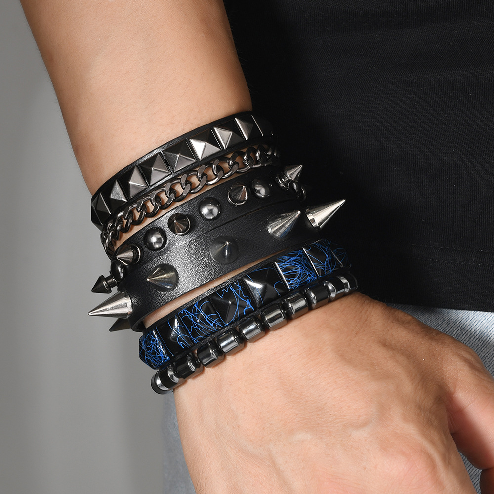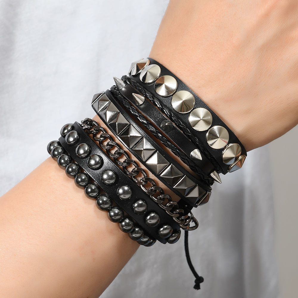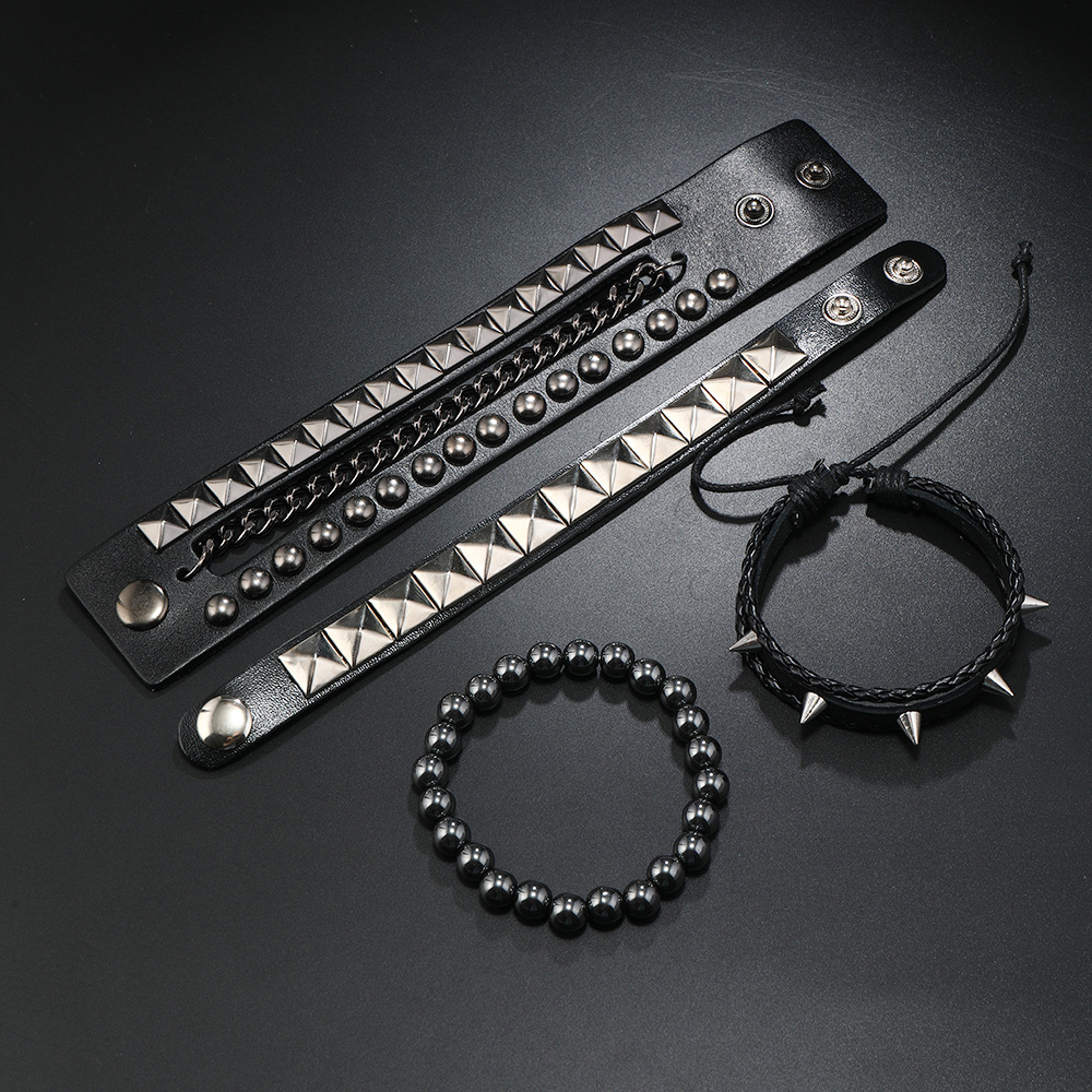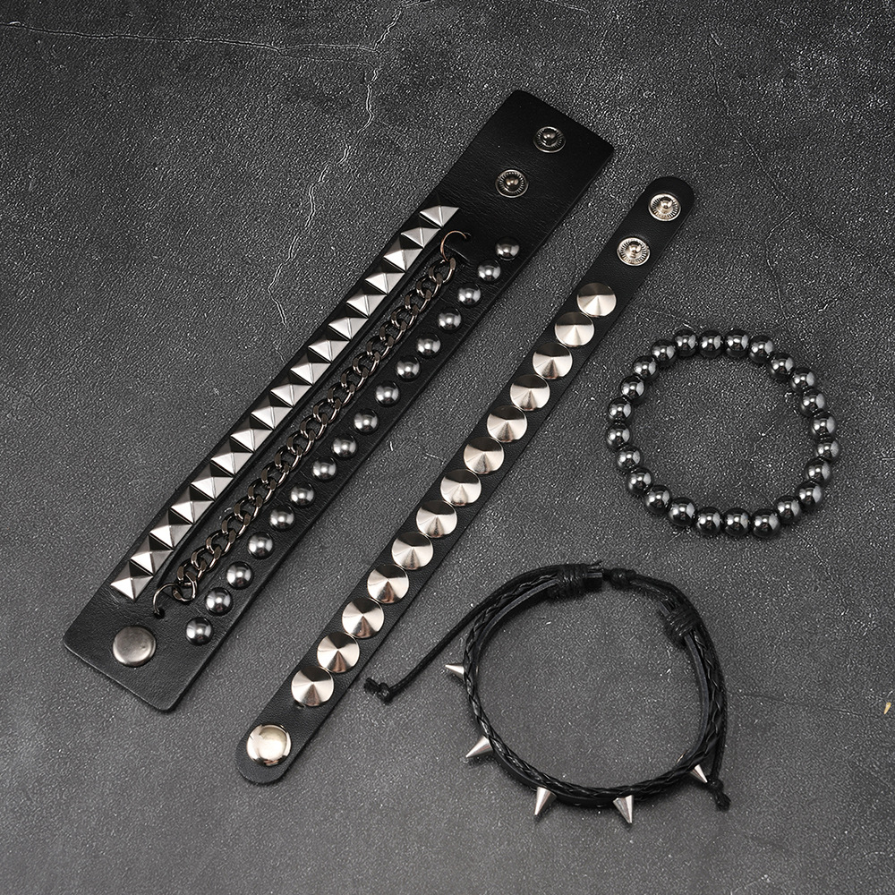 Size: Chain Bracelet is 22cm long and 3.8cm wide, Studded Bracelet is 22cm long and 1.5cm wide, Beaded Bracelet is 5.5cm in diameter, and the beads are 8mm in size. Studded Bracelet is 5.5-7.0cm long (adjustable).