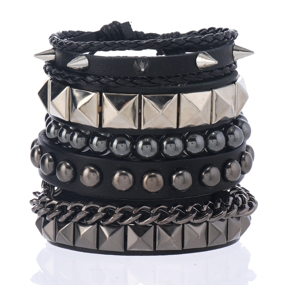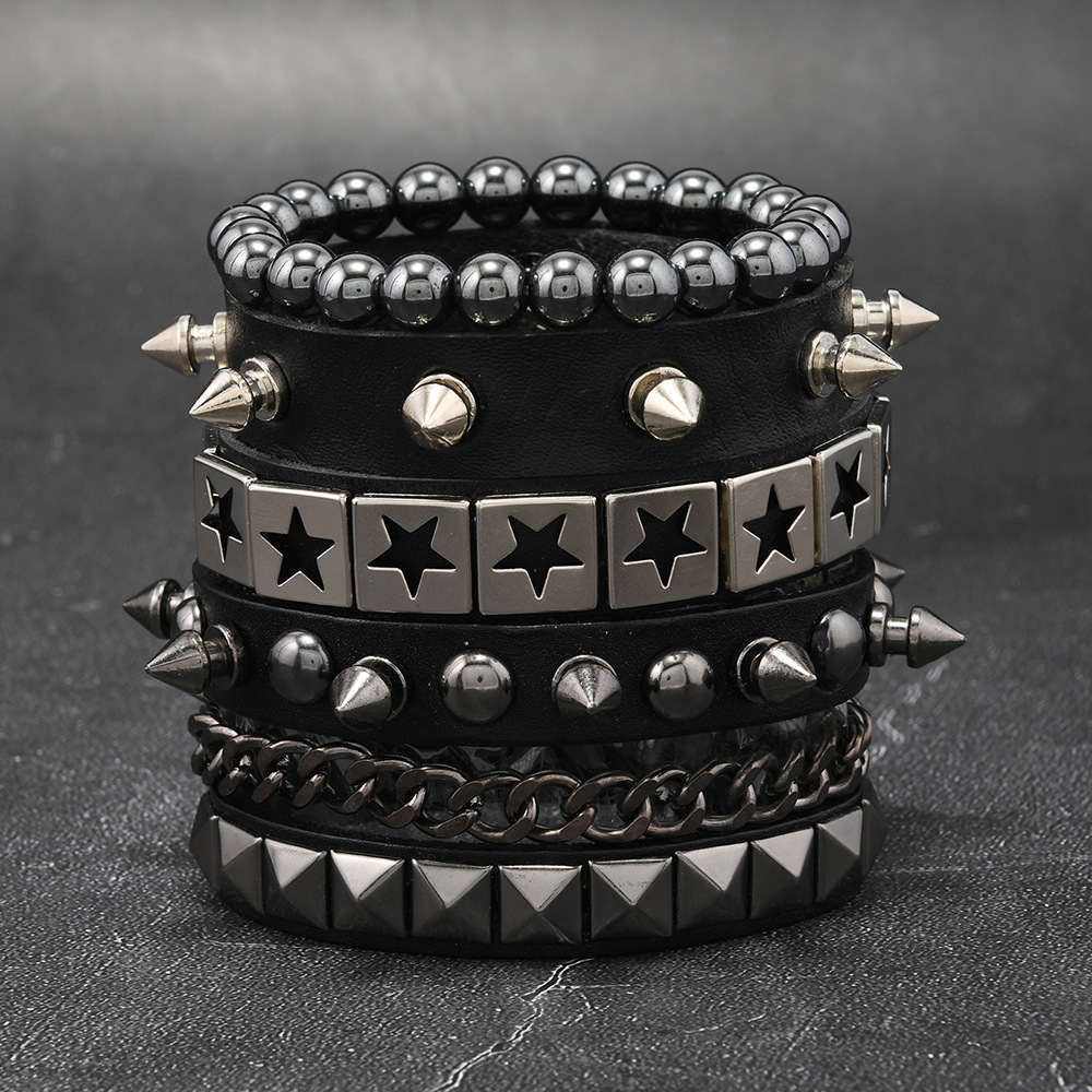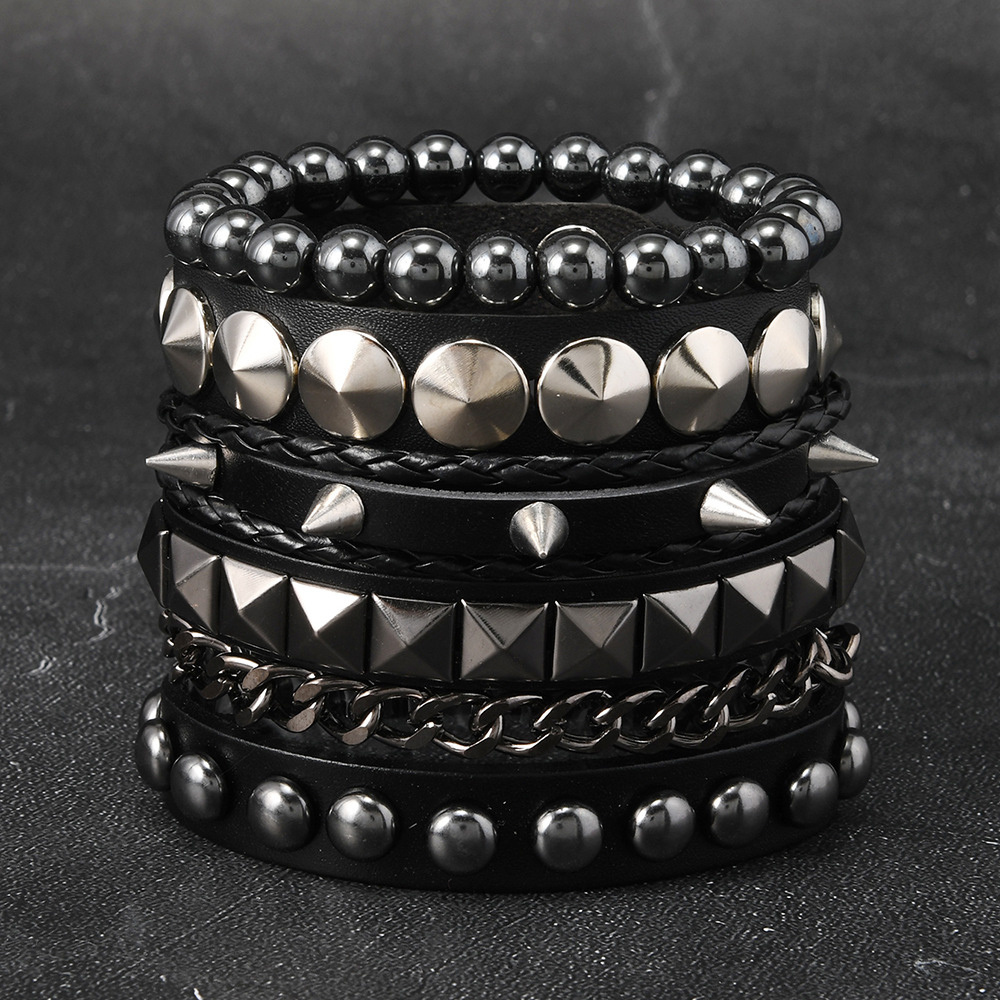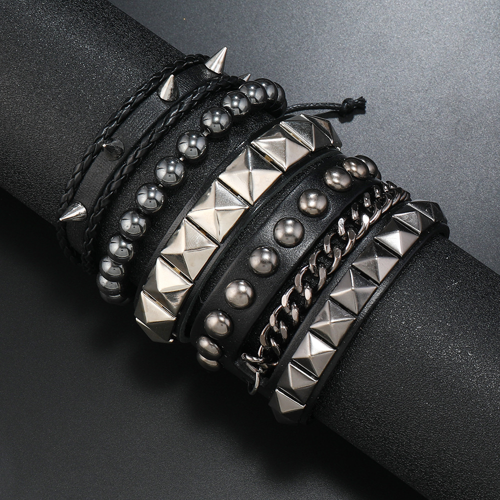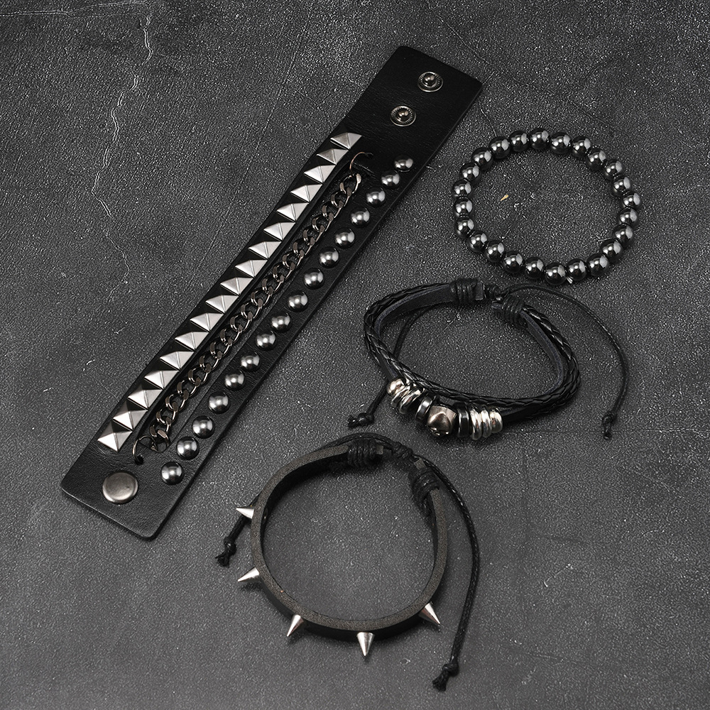 Size: Chain Bracelet is 22cm long and 3.8cm wide, Studded Bracelet is 22cm long and 1.5cm wide, Beaded Bracelet is 5.5cm in diameter, and the beads are 8mm in size. Studded Bracelet is 5.5-7.0cm long (adjustable).
