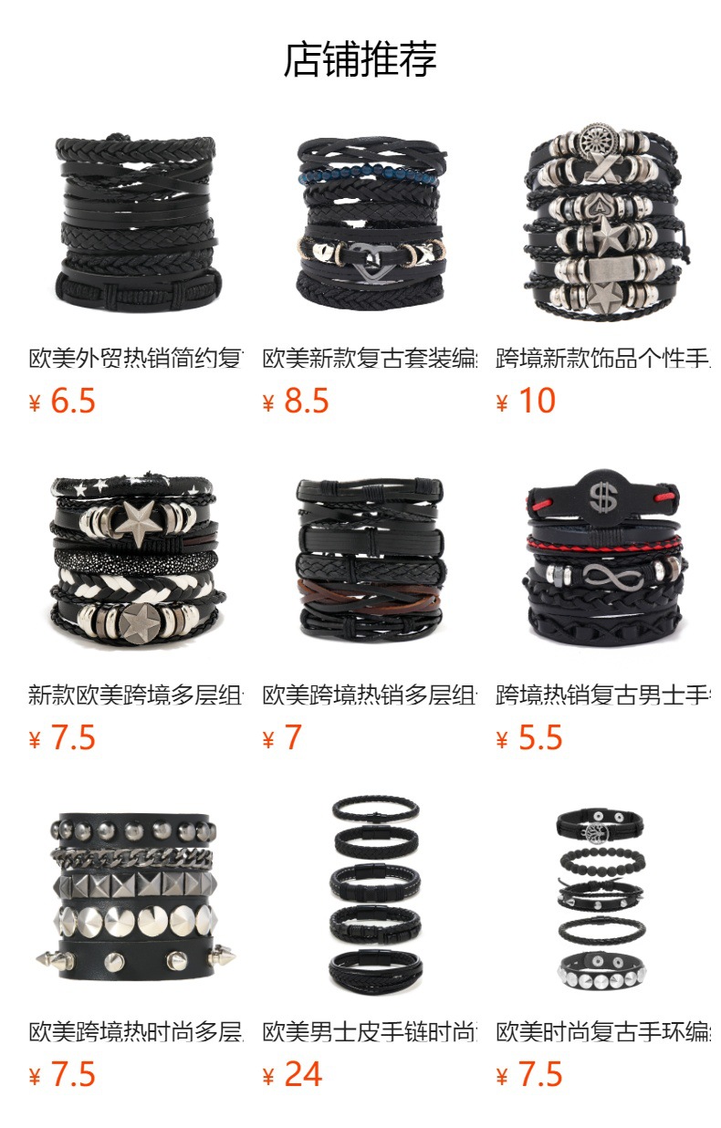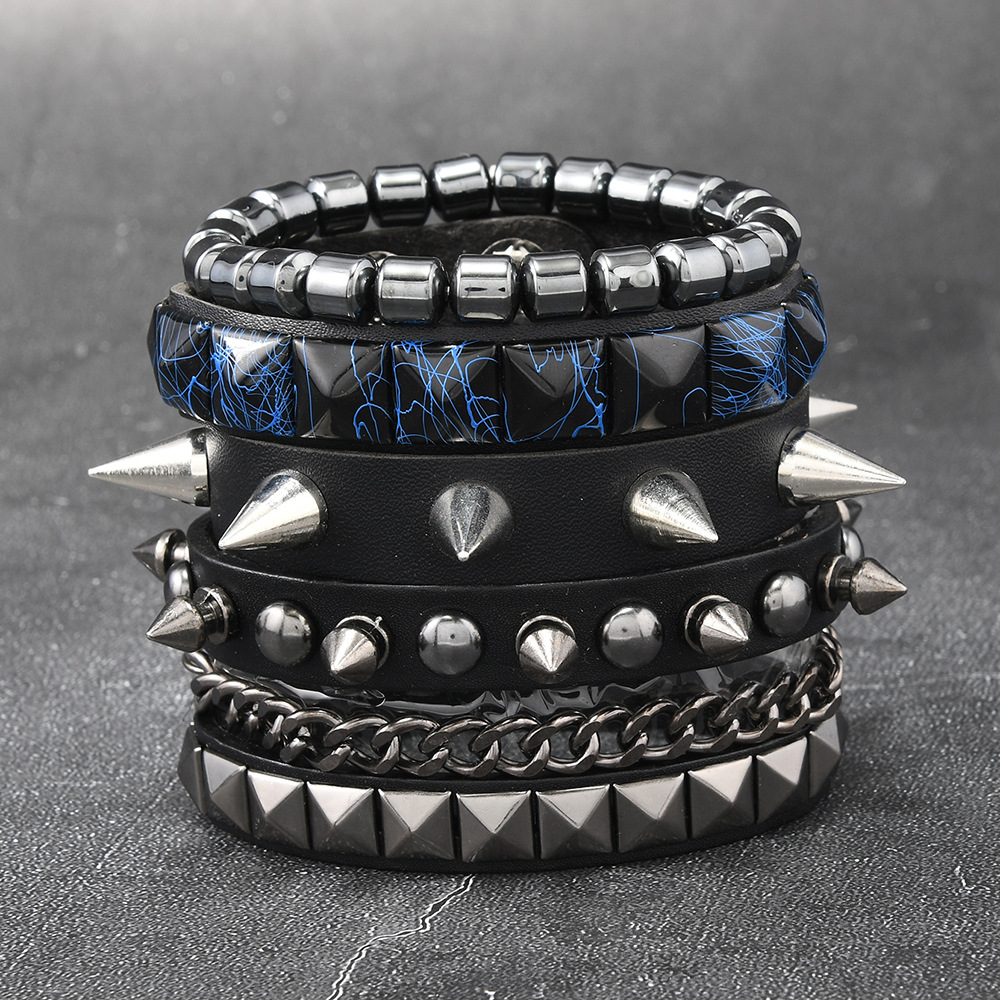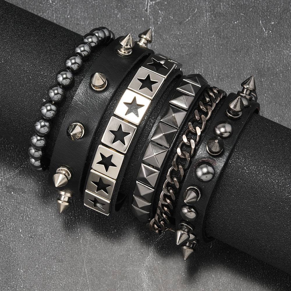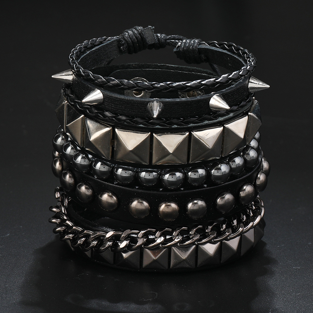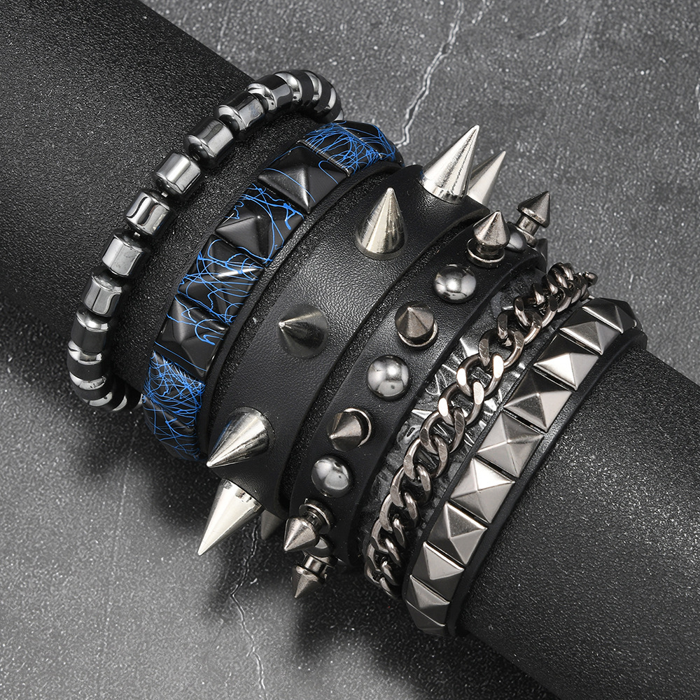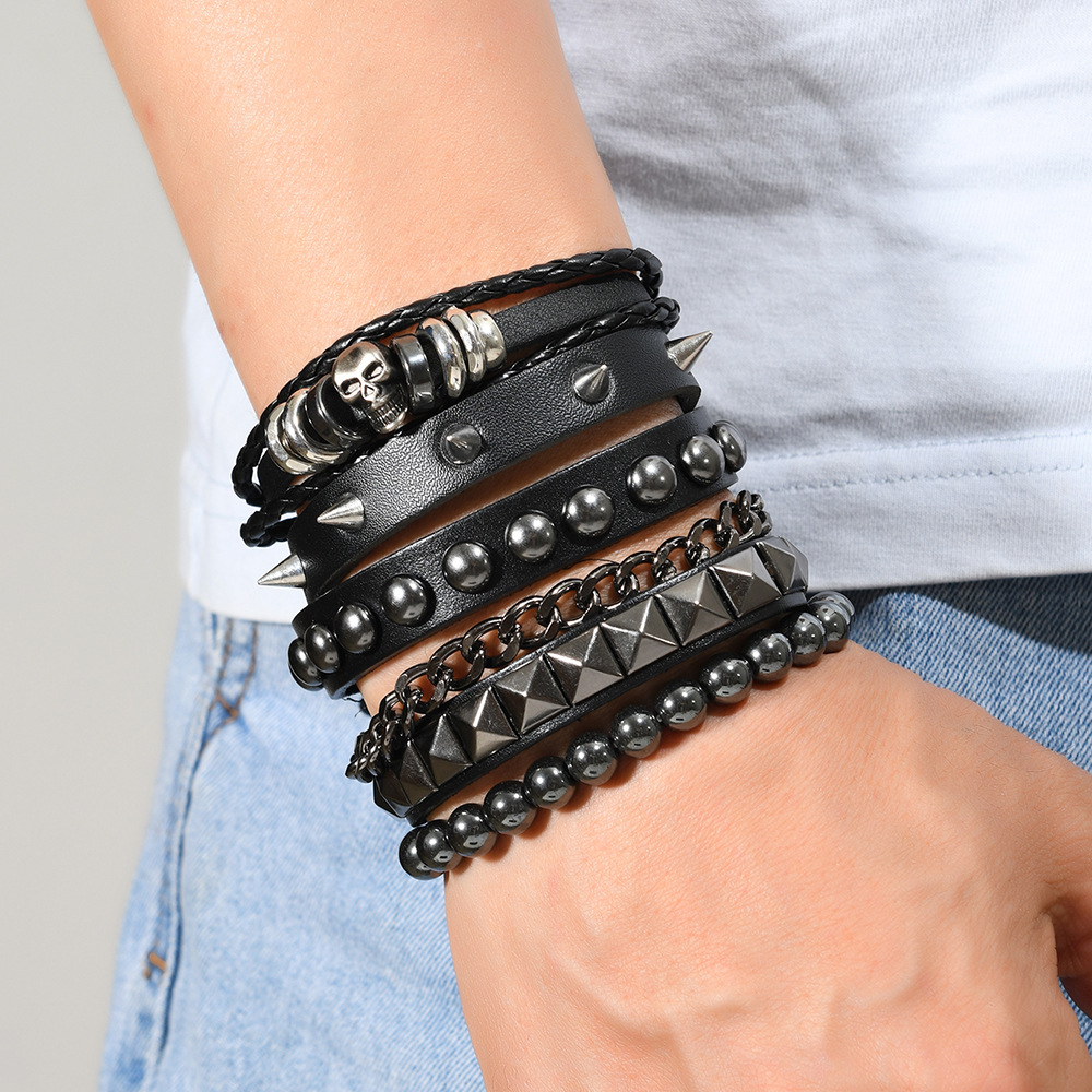 Size: Chain Bracelet is 22cm long and 3.8cm wide, Studded Bracelet is 22cm long and 1.5cm wide, Beaded Bracelet is 5.5cm in diameter, and the beads are 8mm in size. Studded Bracelet is 5.5-7.0cm long (adjustable).