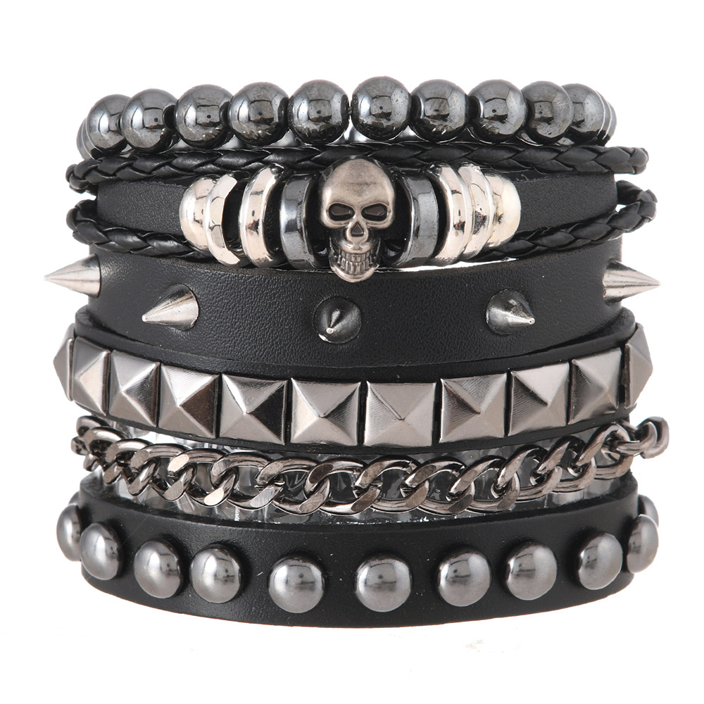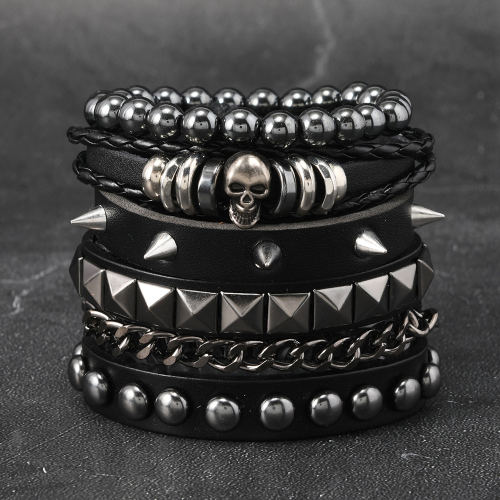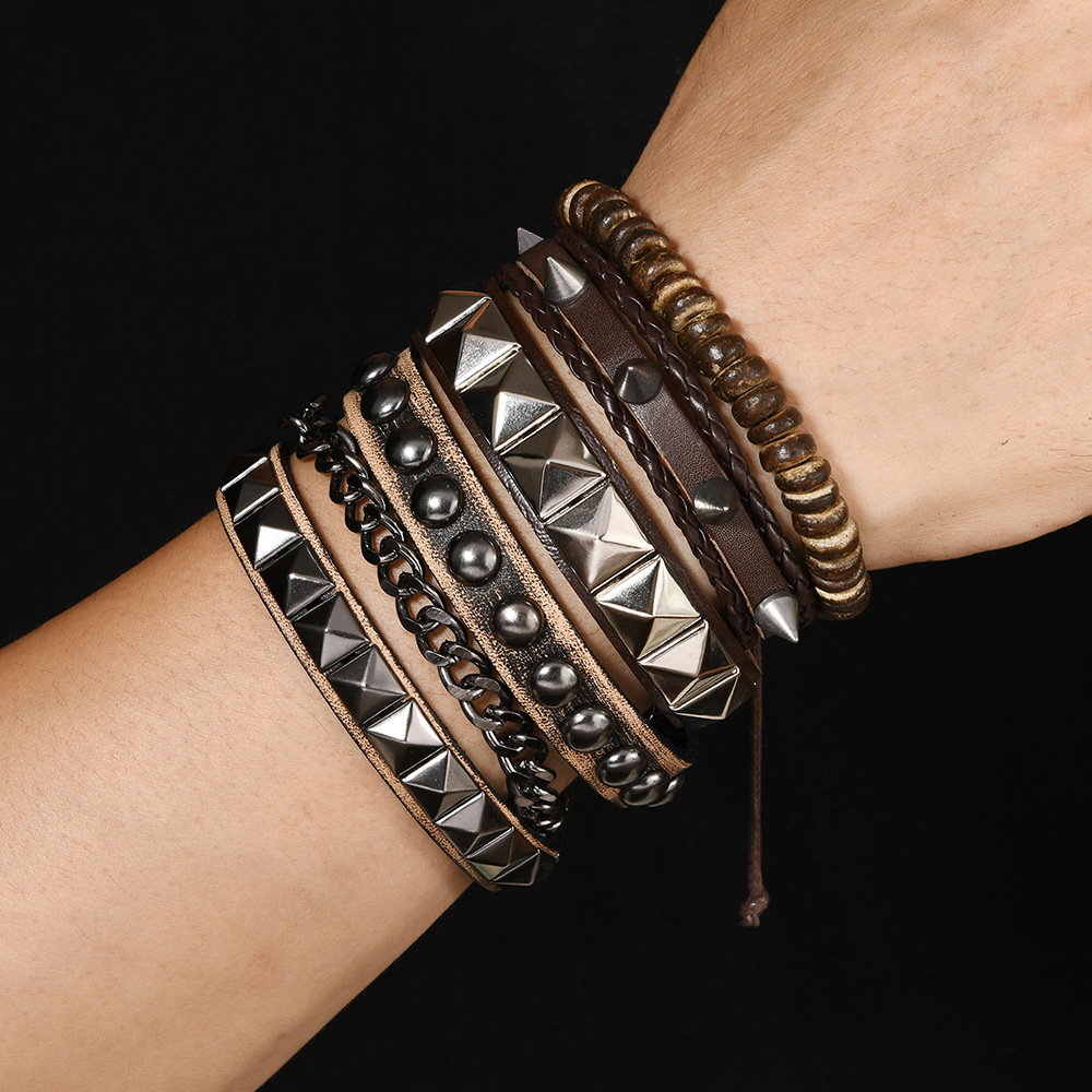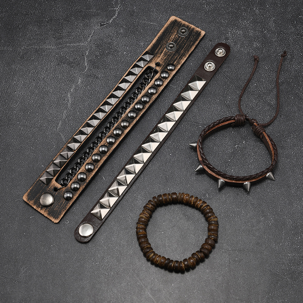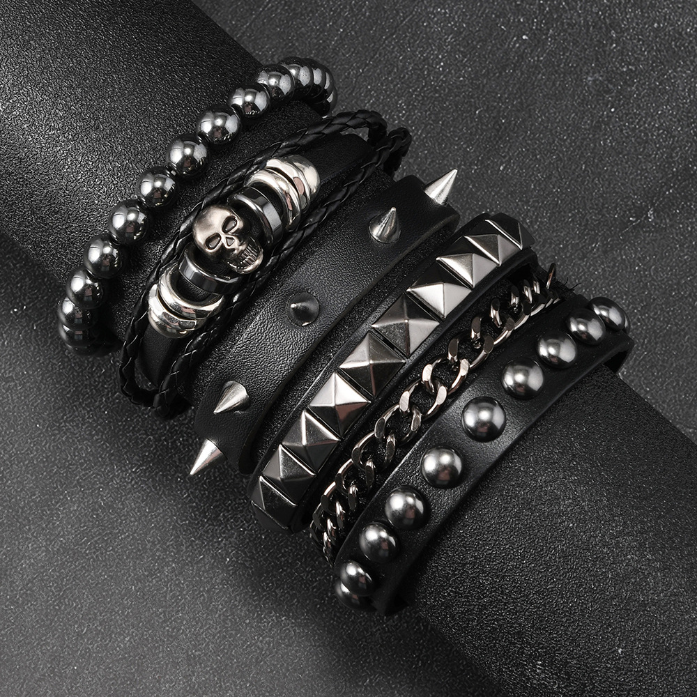 Size: Chain Bracelet is 22cm long and 3.8cm wide, Studded Bracelet is 22cm long and 1.5cm wide, Beaded Bracelet is 5.5cm in diameter, and the beads are 8mm in size. Studded Bracelet is 5.5-7.0cm long (adjustable).