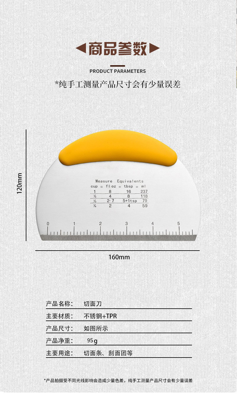specifications: yellow dough scraper (double-sided scale) opp bag, red cut