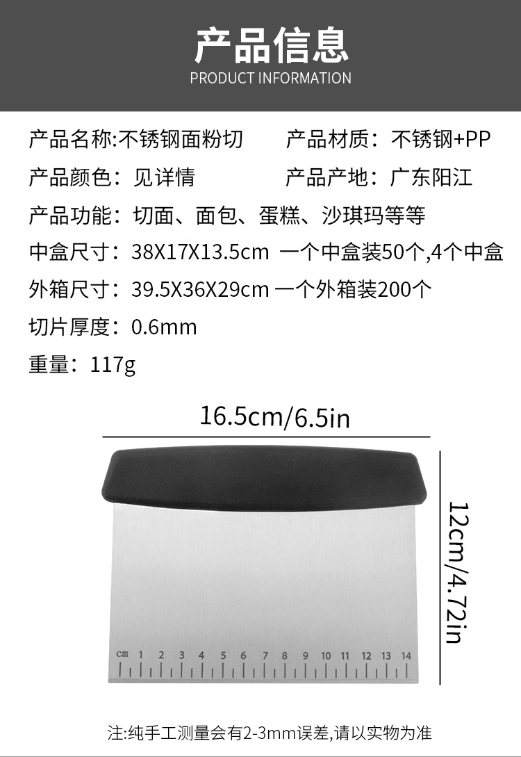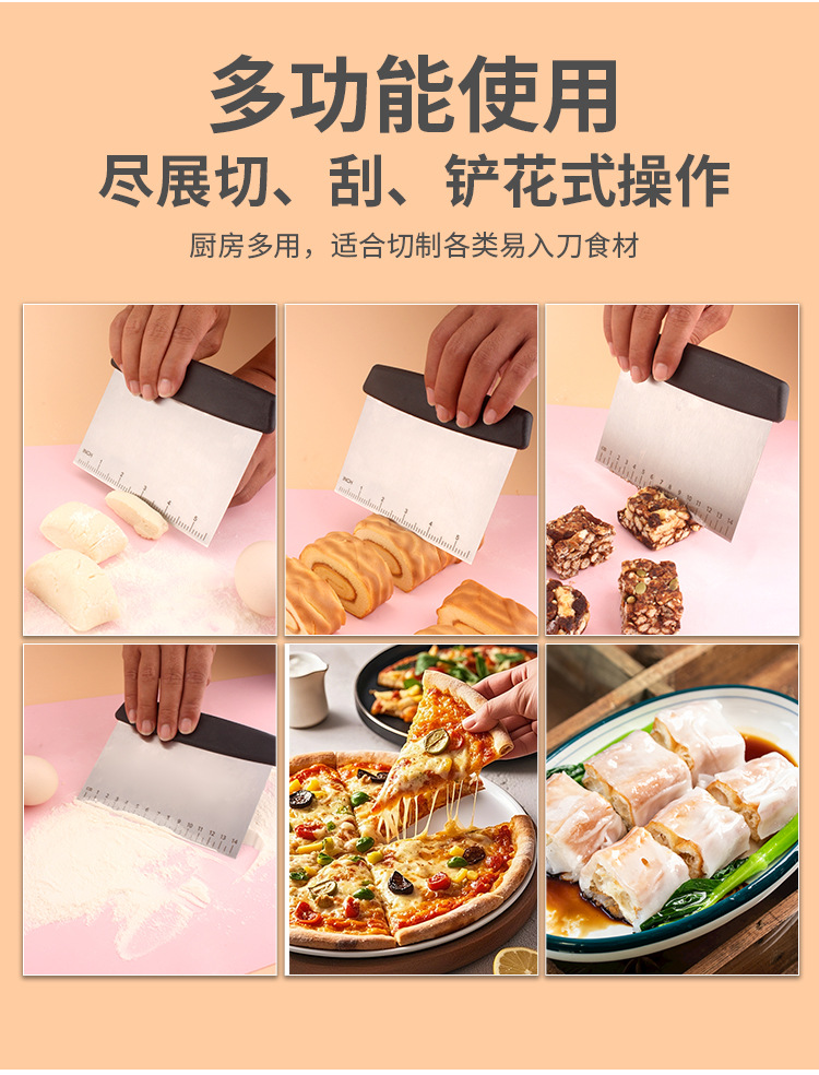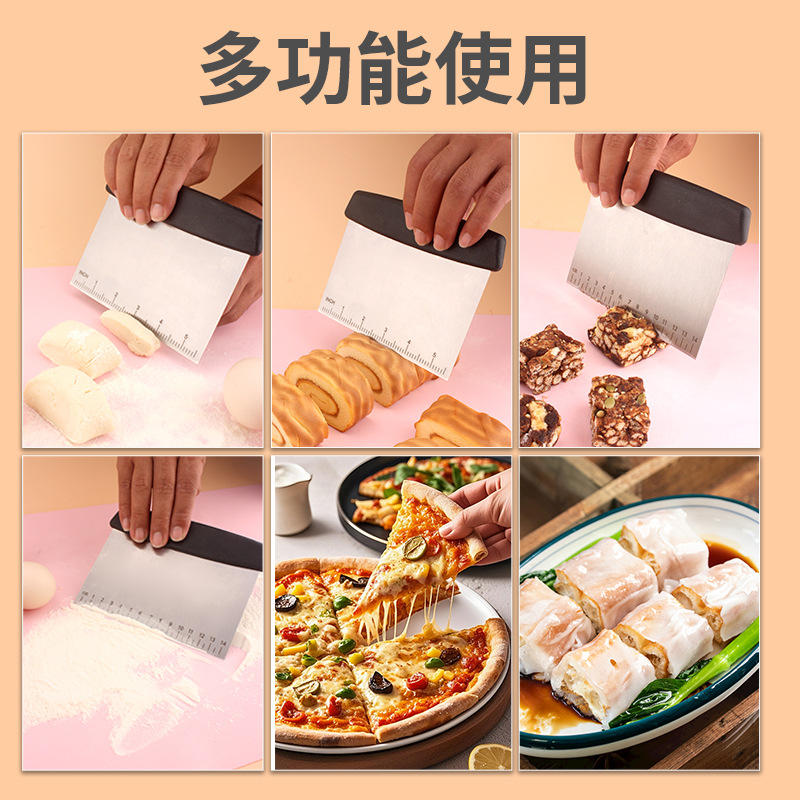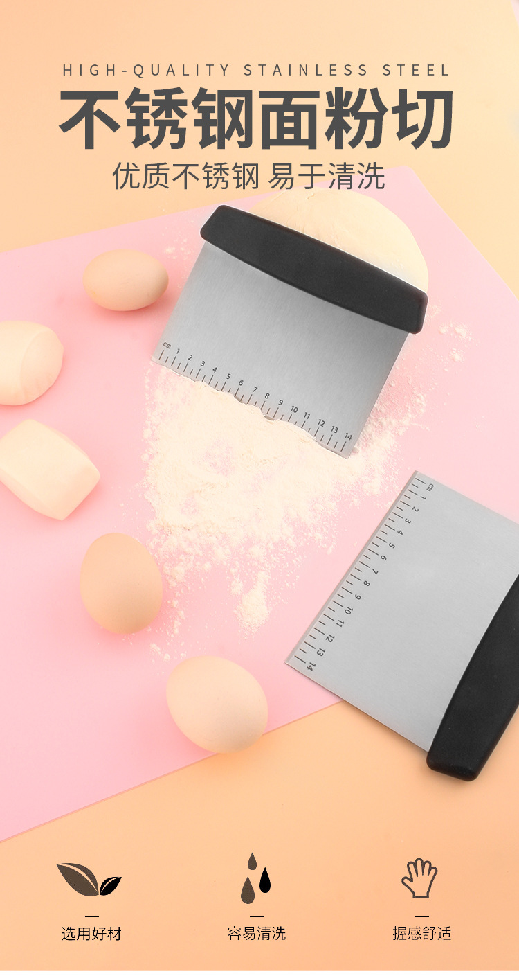 factory wholesale stainless steel dough scraper for home use, rice noodles scraper with scale, dough cutter, flour cutter
