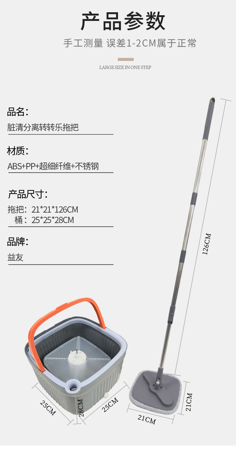 wastewater-separating mop and bucket set, 1 set [includes 1 mop cloth]