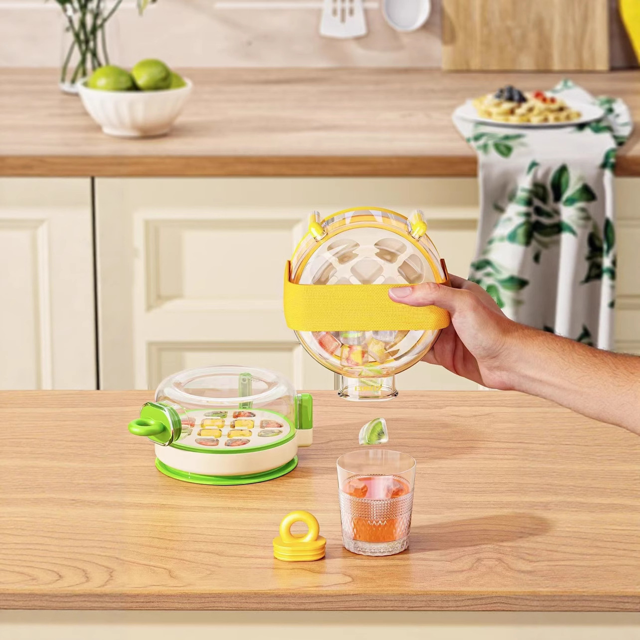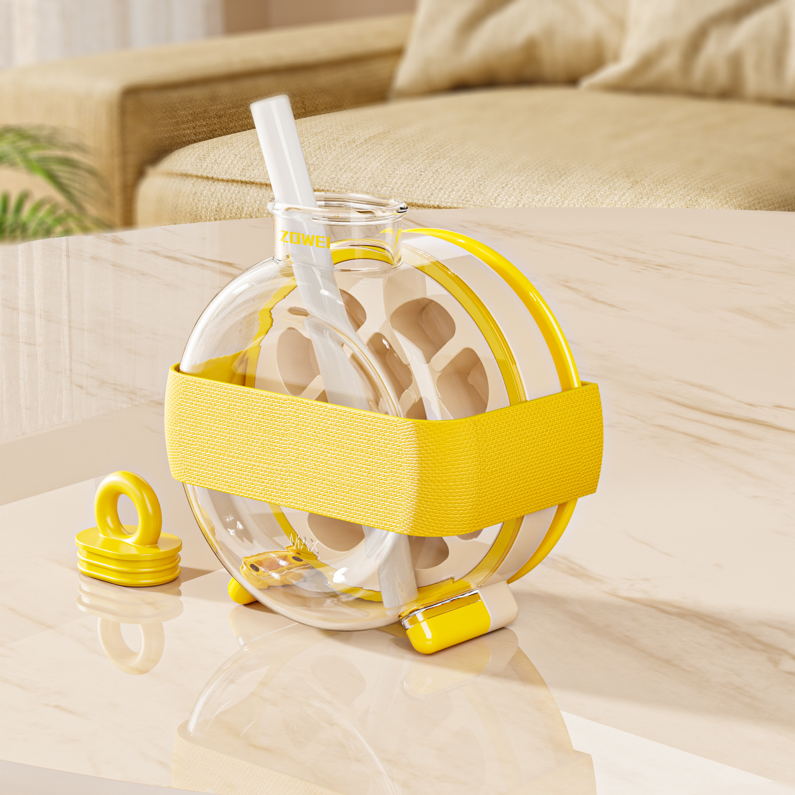 yellow with a strap and straw