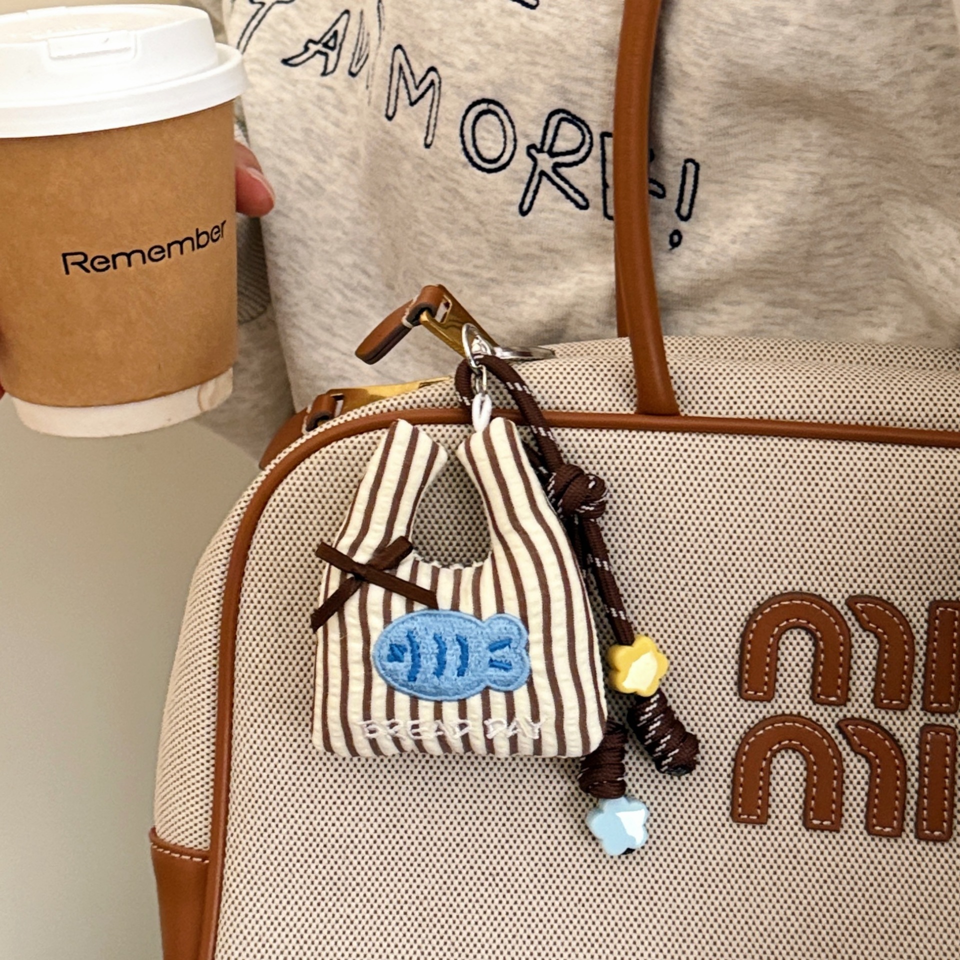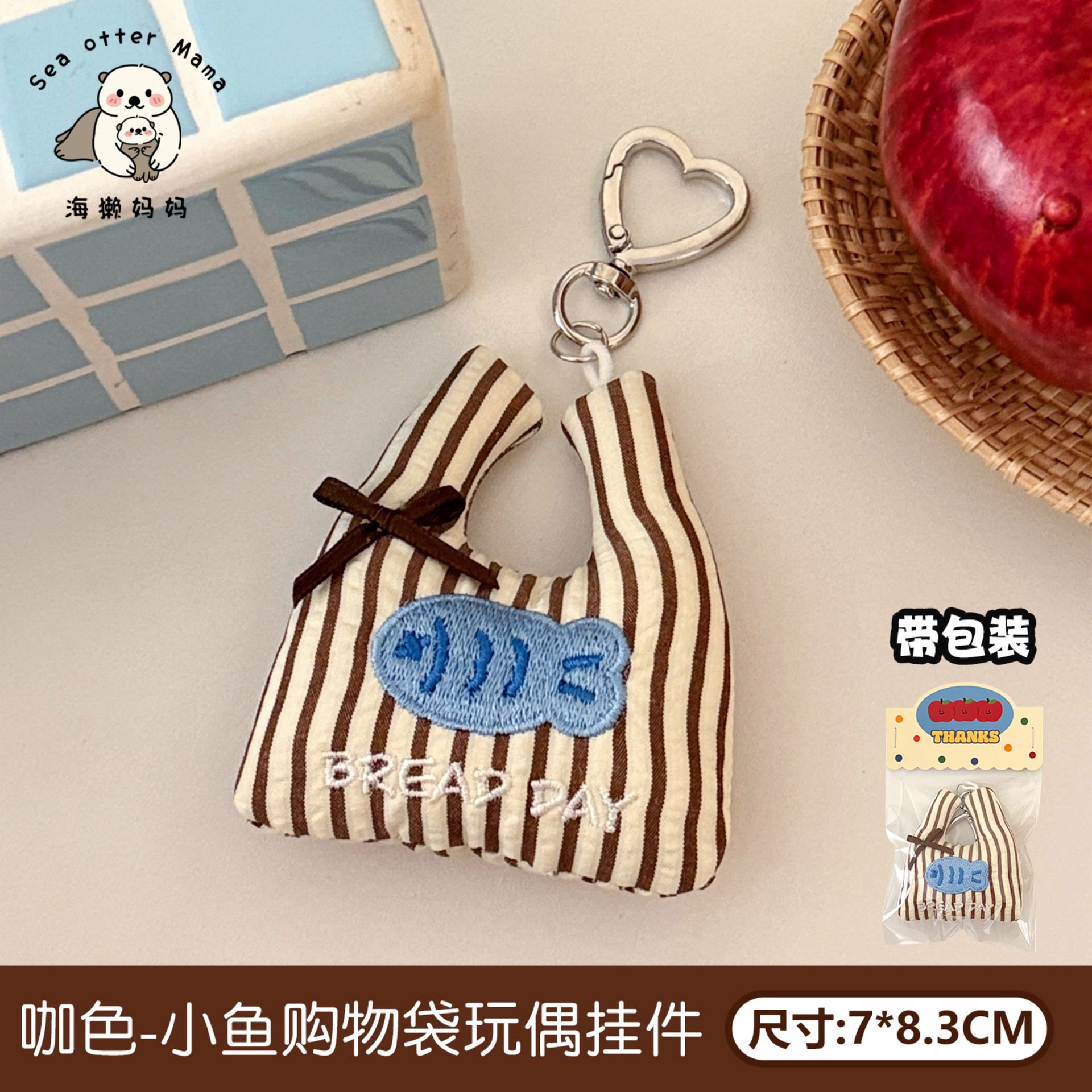 #4 coffee-colored little fish shopping bag with heart-shaped lanyard