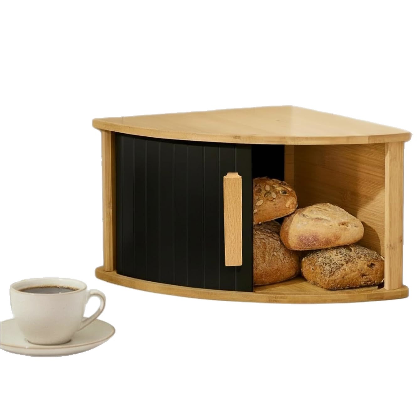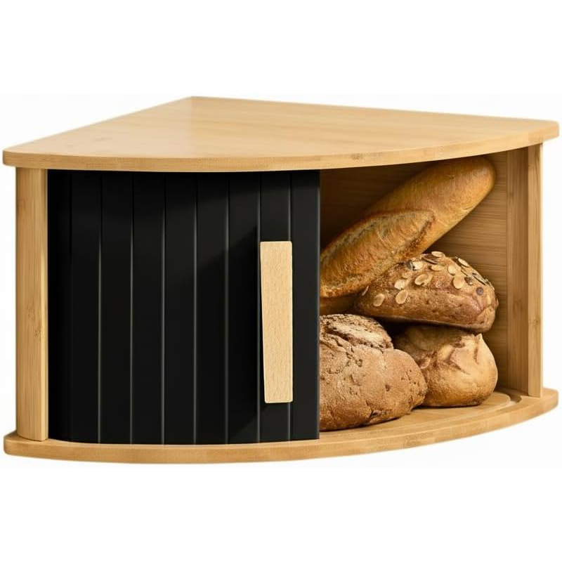 bamboo and wood corner bread box, kitchen baking snack food storage box, sliding door single-layer cake snack storage box