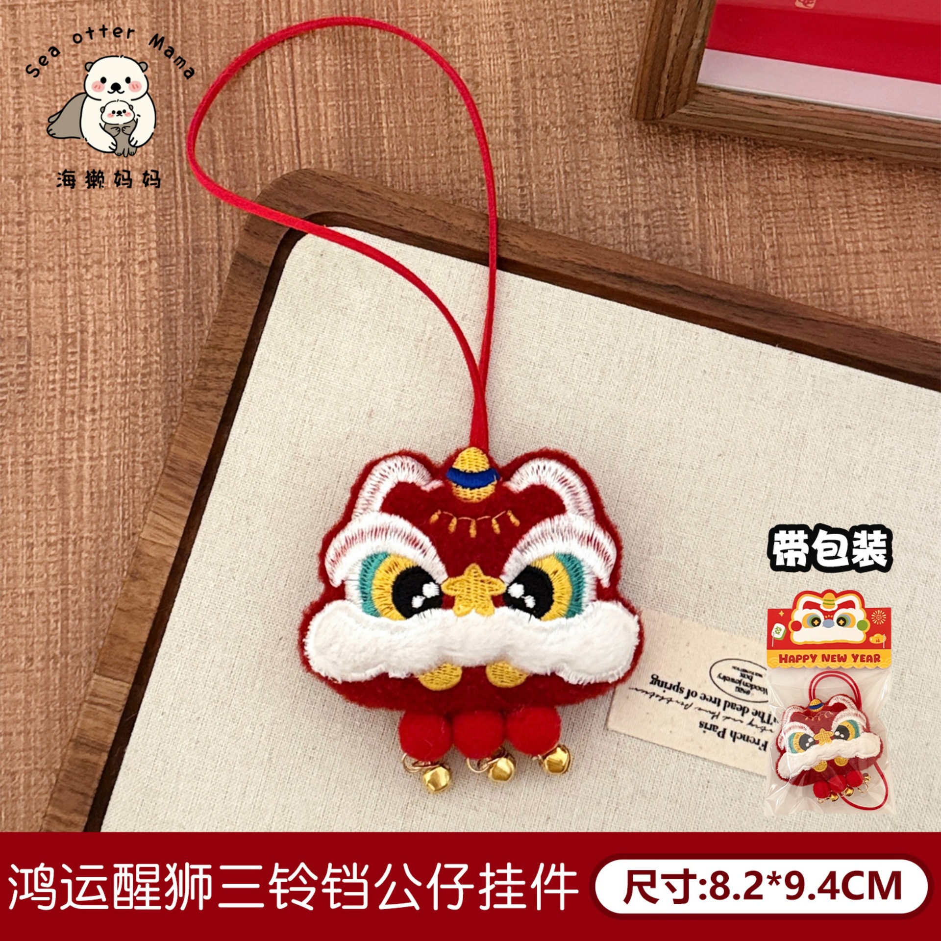 1# lucky lion dance three-bell doll pendant
