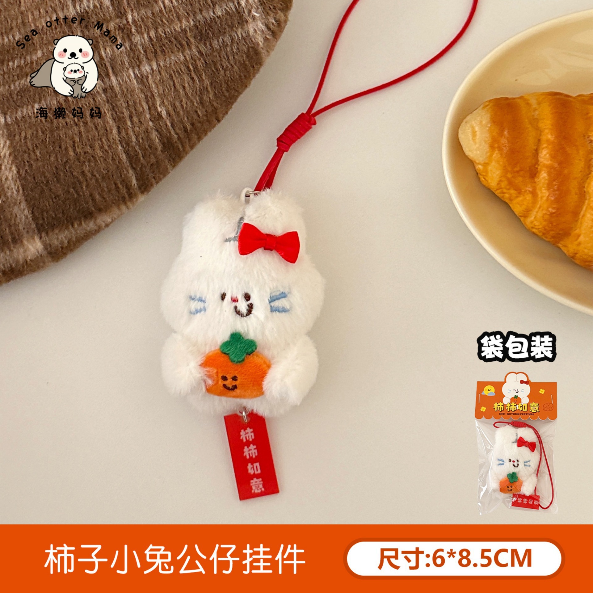 3# persimmon bunny doll pendant