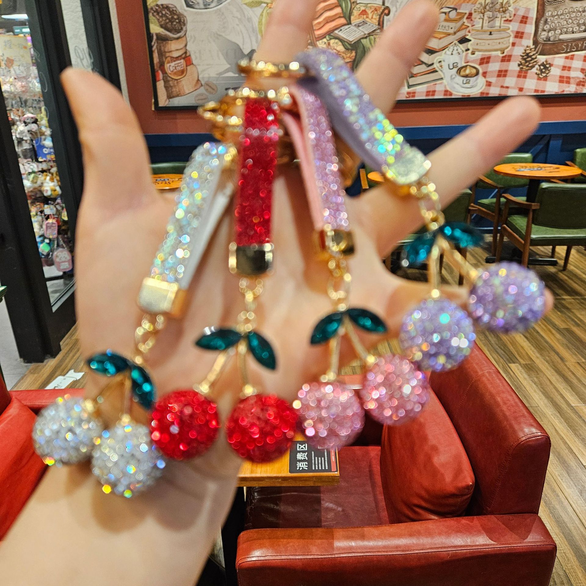 color: diamond cherry keychain [random mixed hair], diamond cherry key