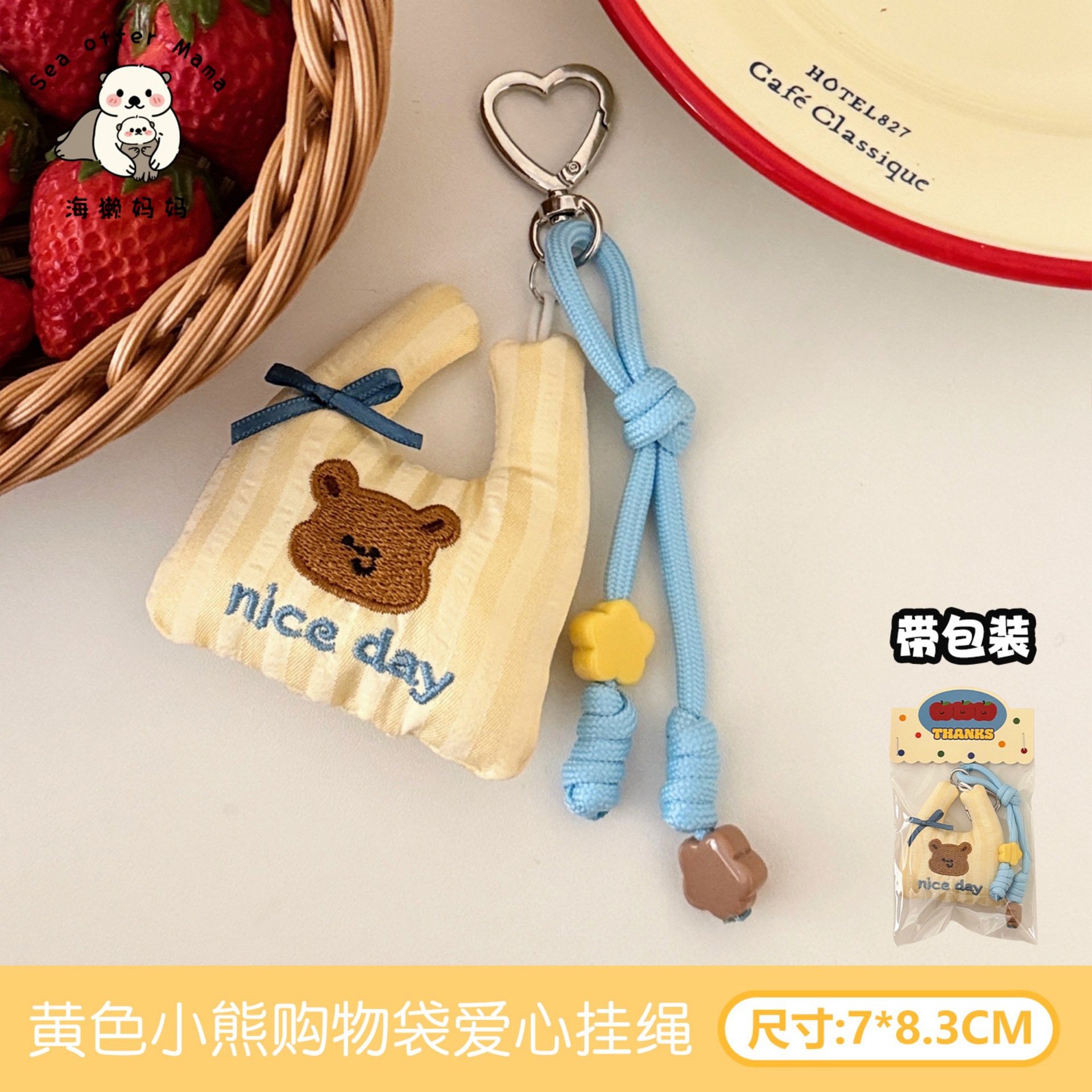 3# yellow teddy bear shopping bag with heart-shaped lanyard