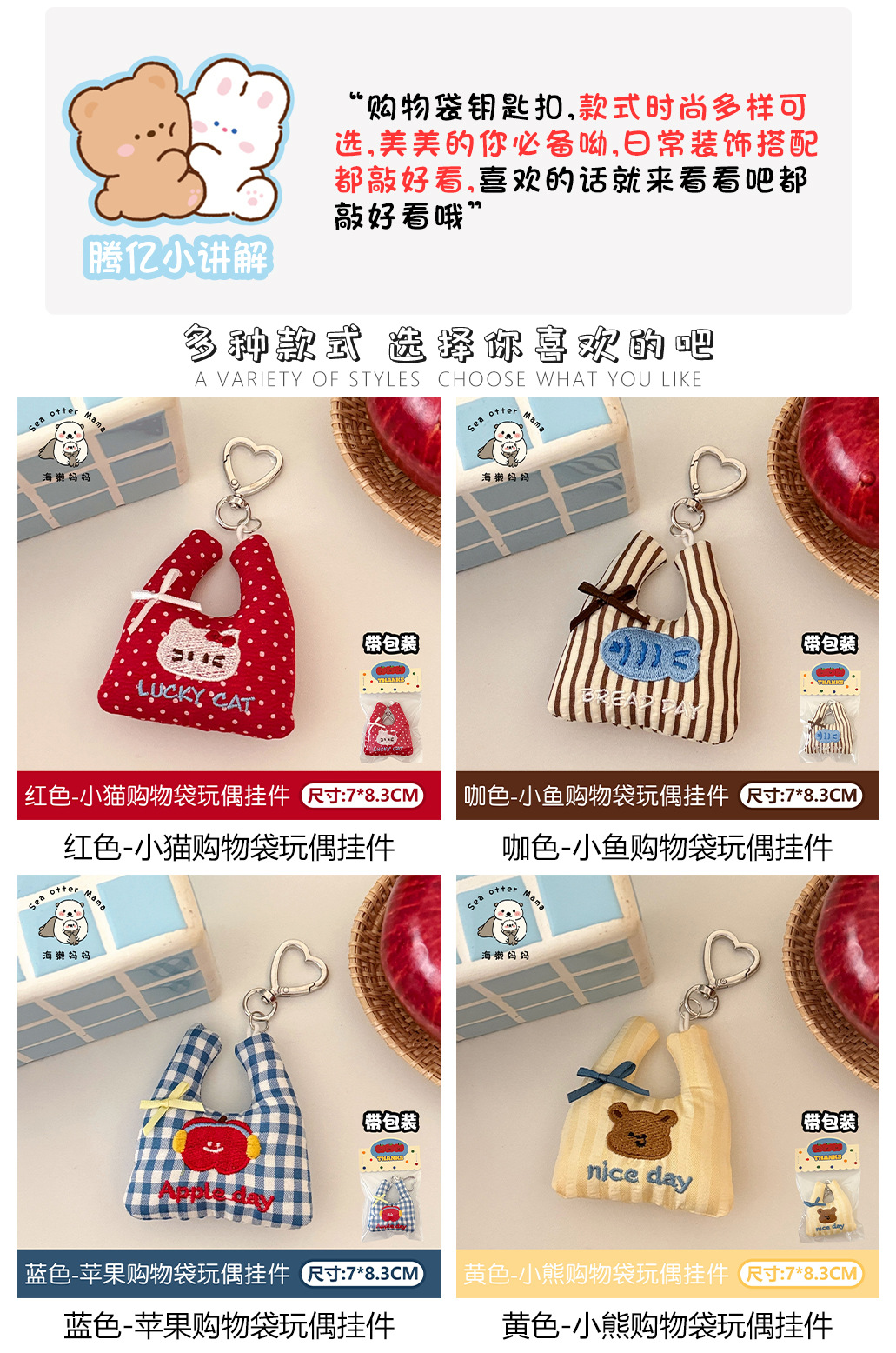 3# blue-apple shopping bag doll pendant