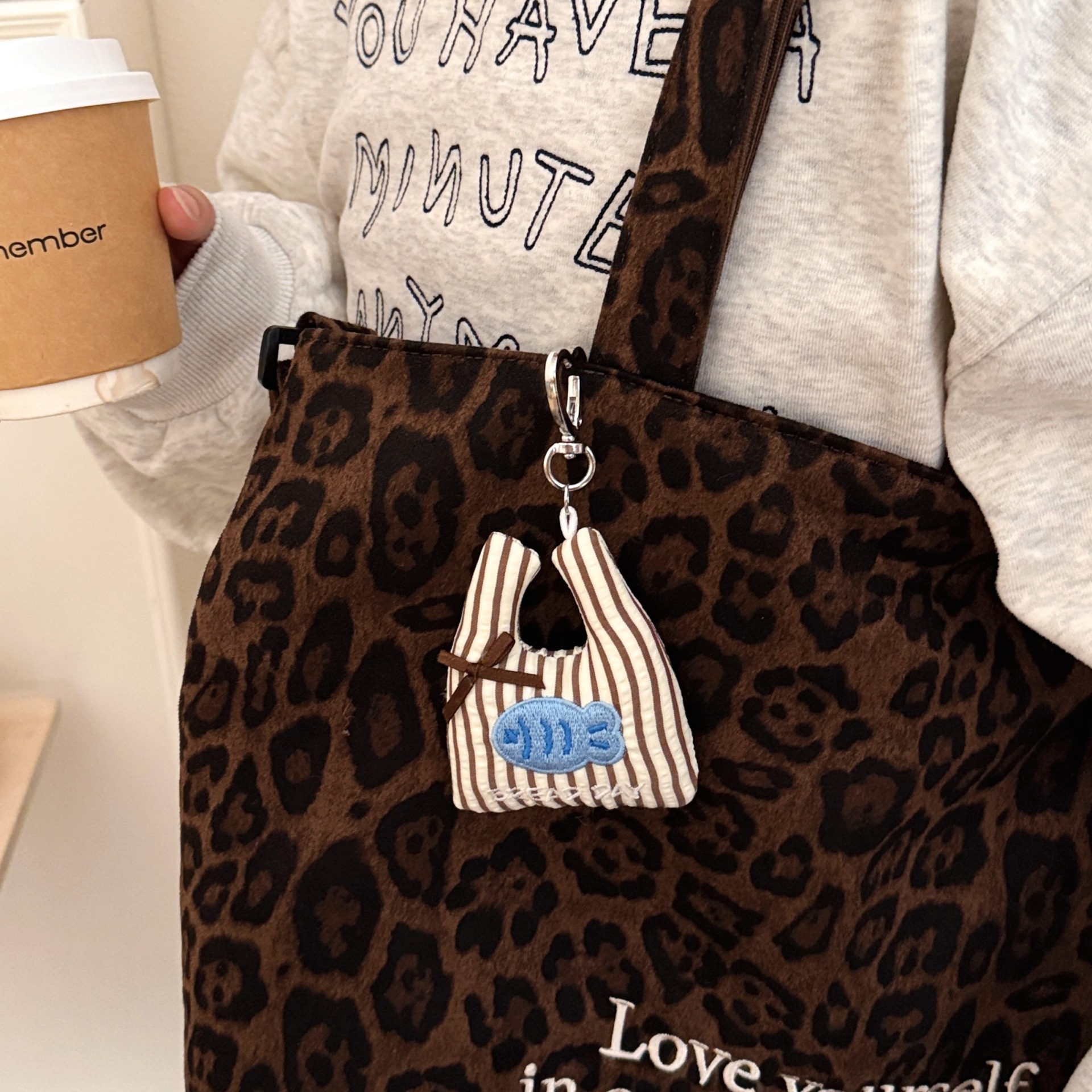 #4 coffee-colored little fish shopping bag with heart-shaped lanyard