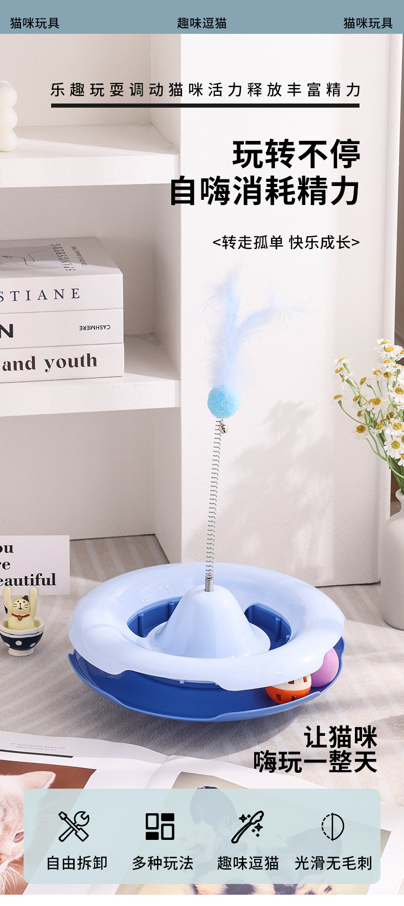 toy suction cup teaser self-amusement boredom-relief item lazy people's automatic teaser feather with bell bite-resistant