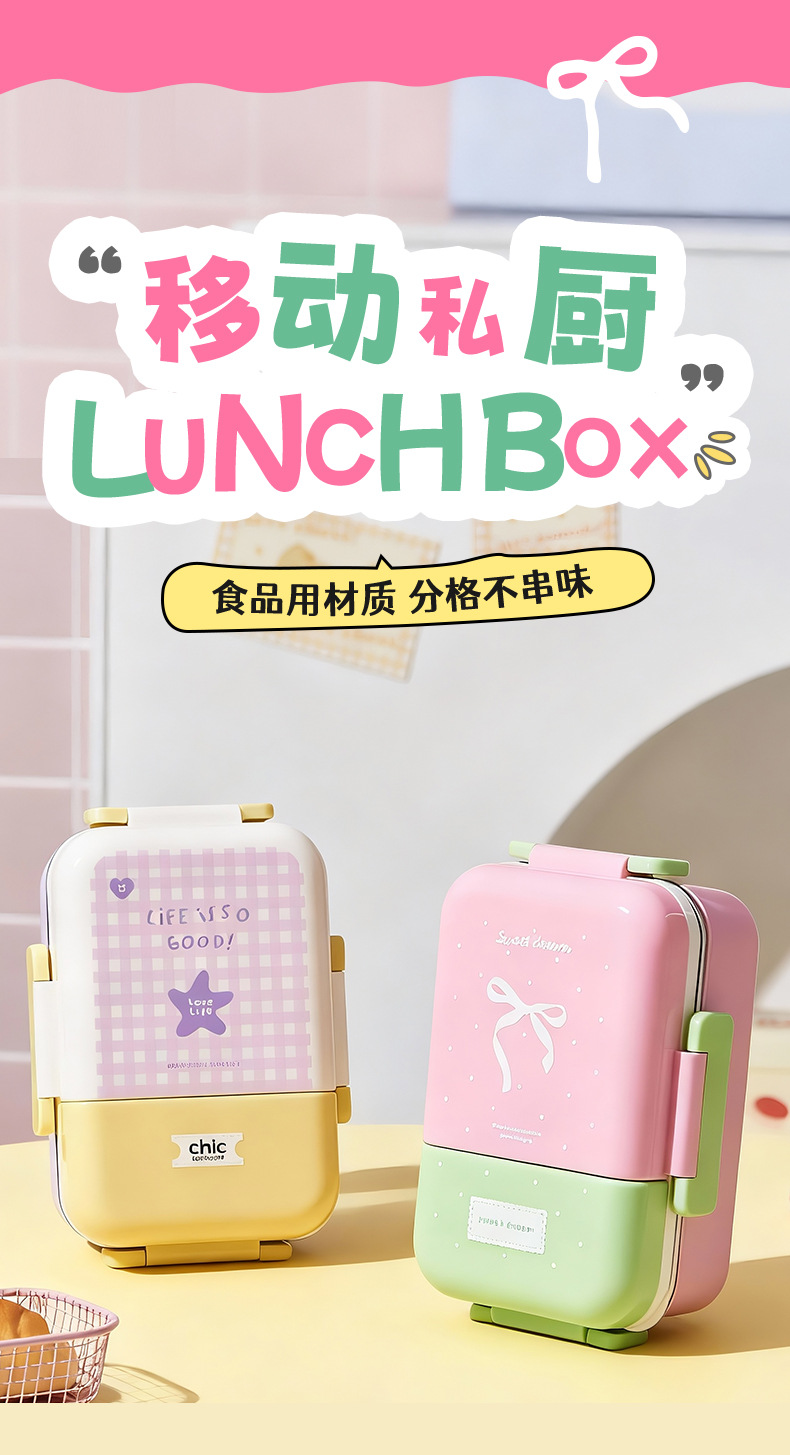 three-grid bowknot lunch box 36 pieces per box