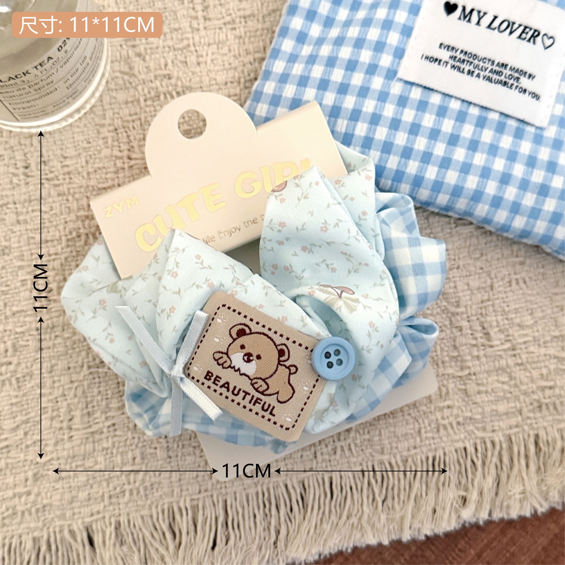 1# blue plaid little rabbit cloth label large intestine ring