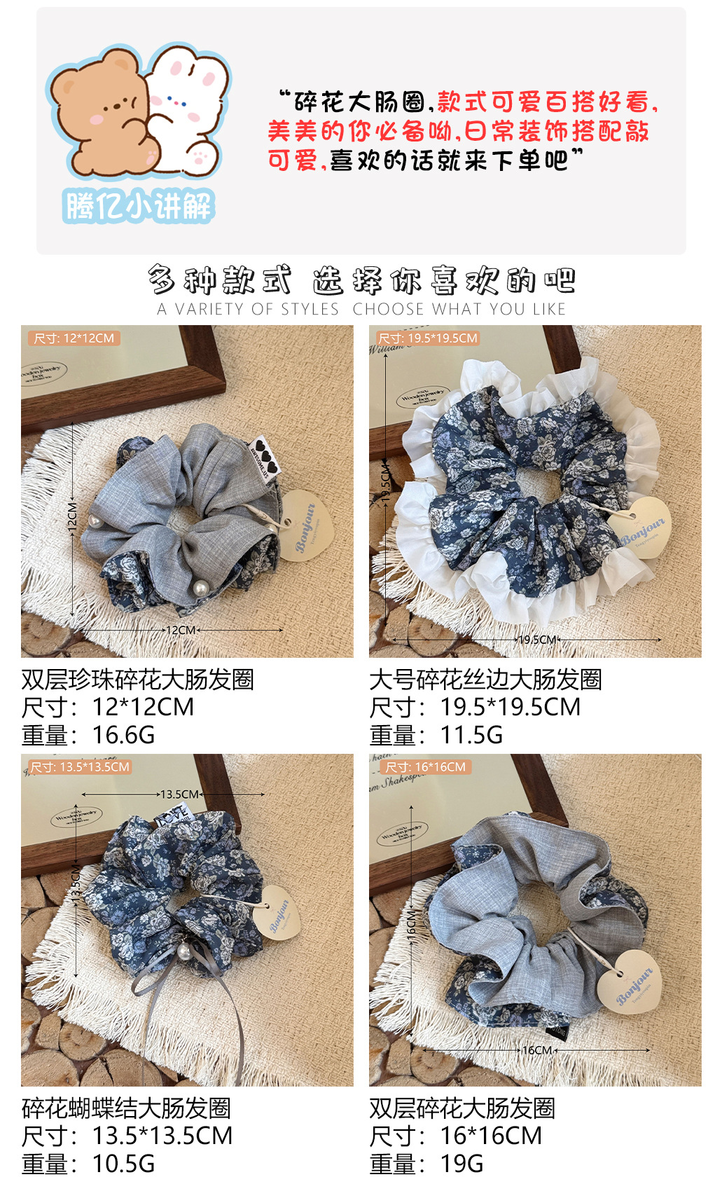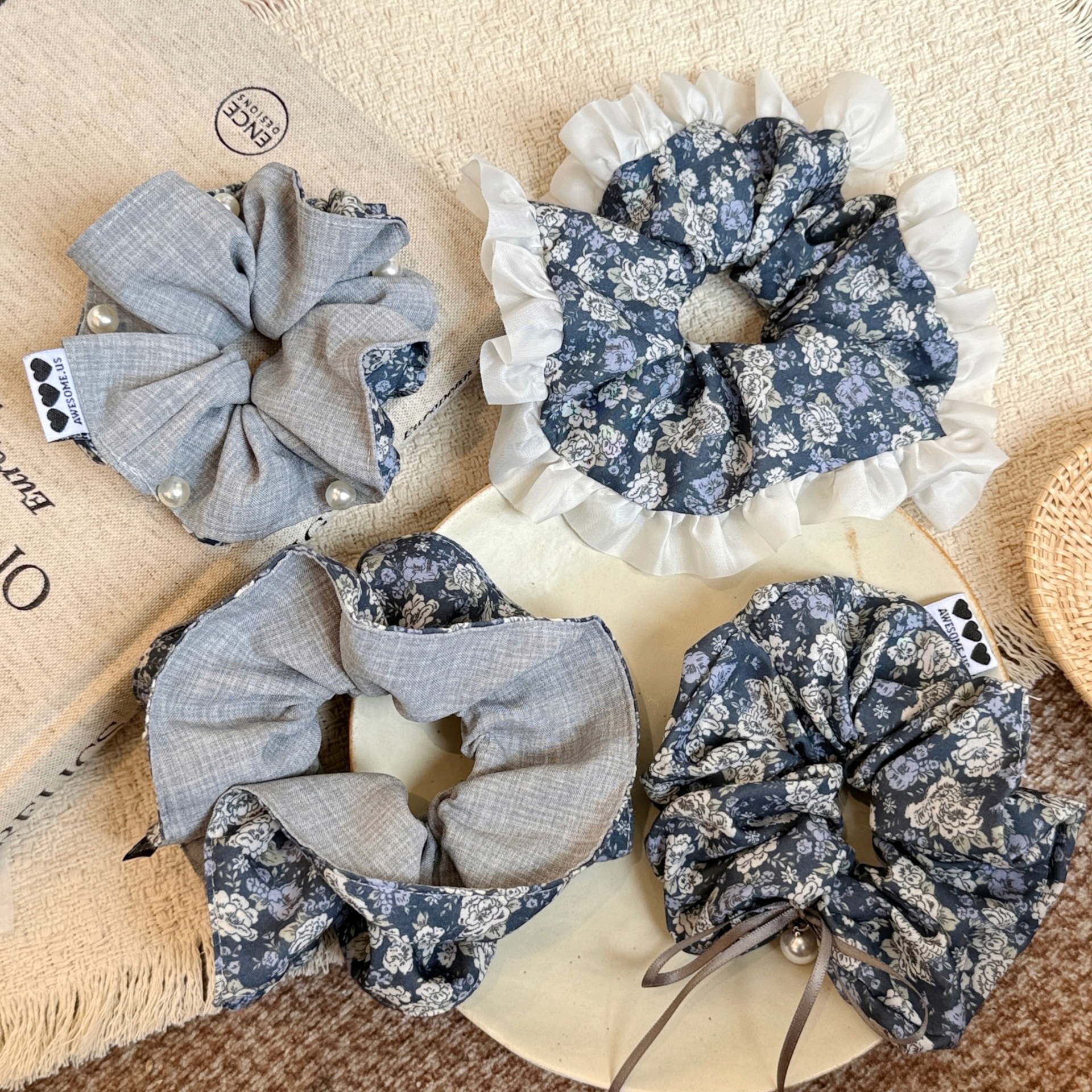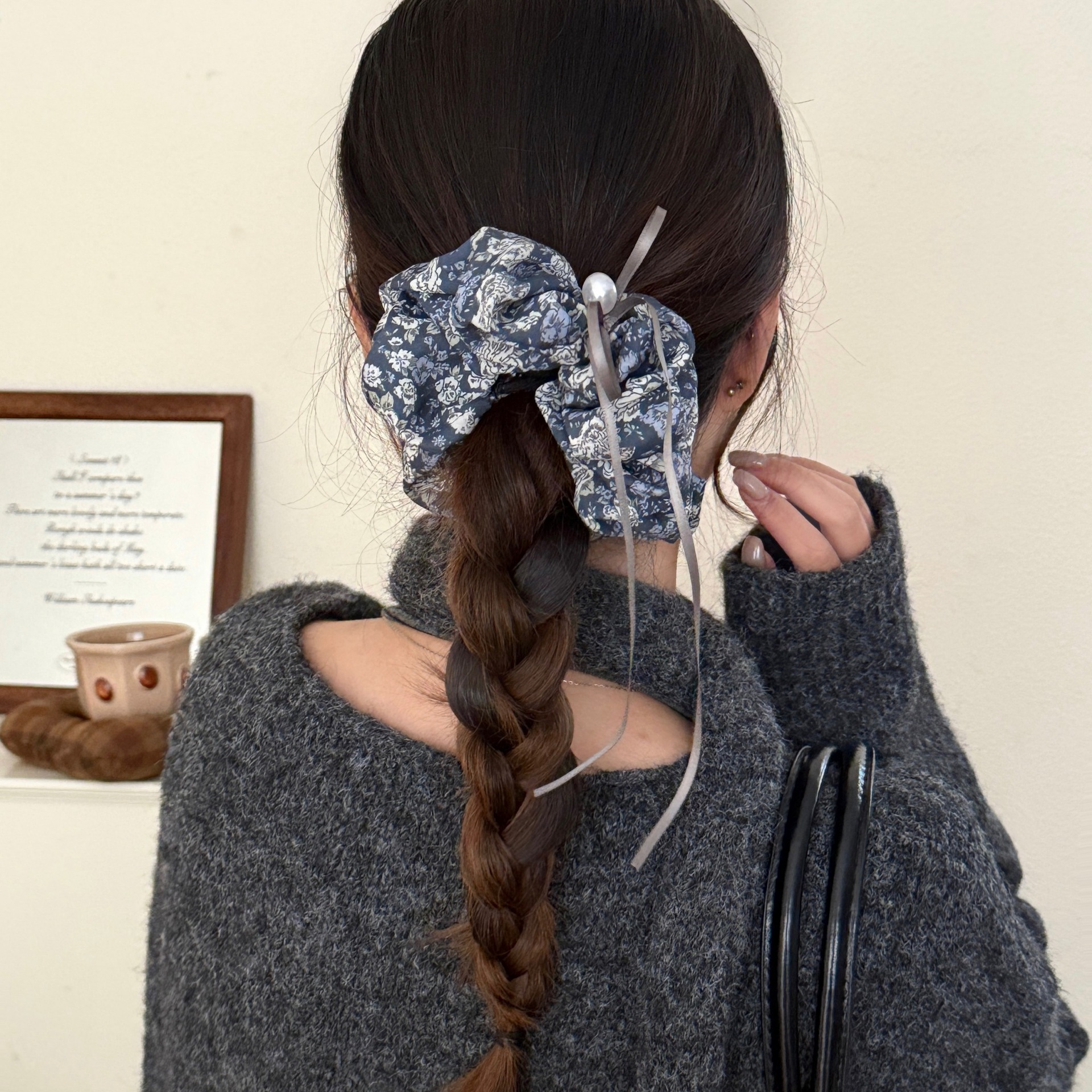 4# double-layered floral-print hair tie