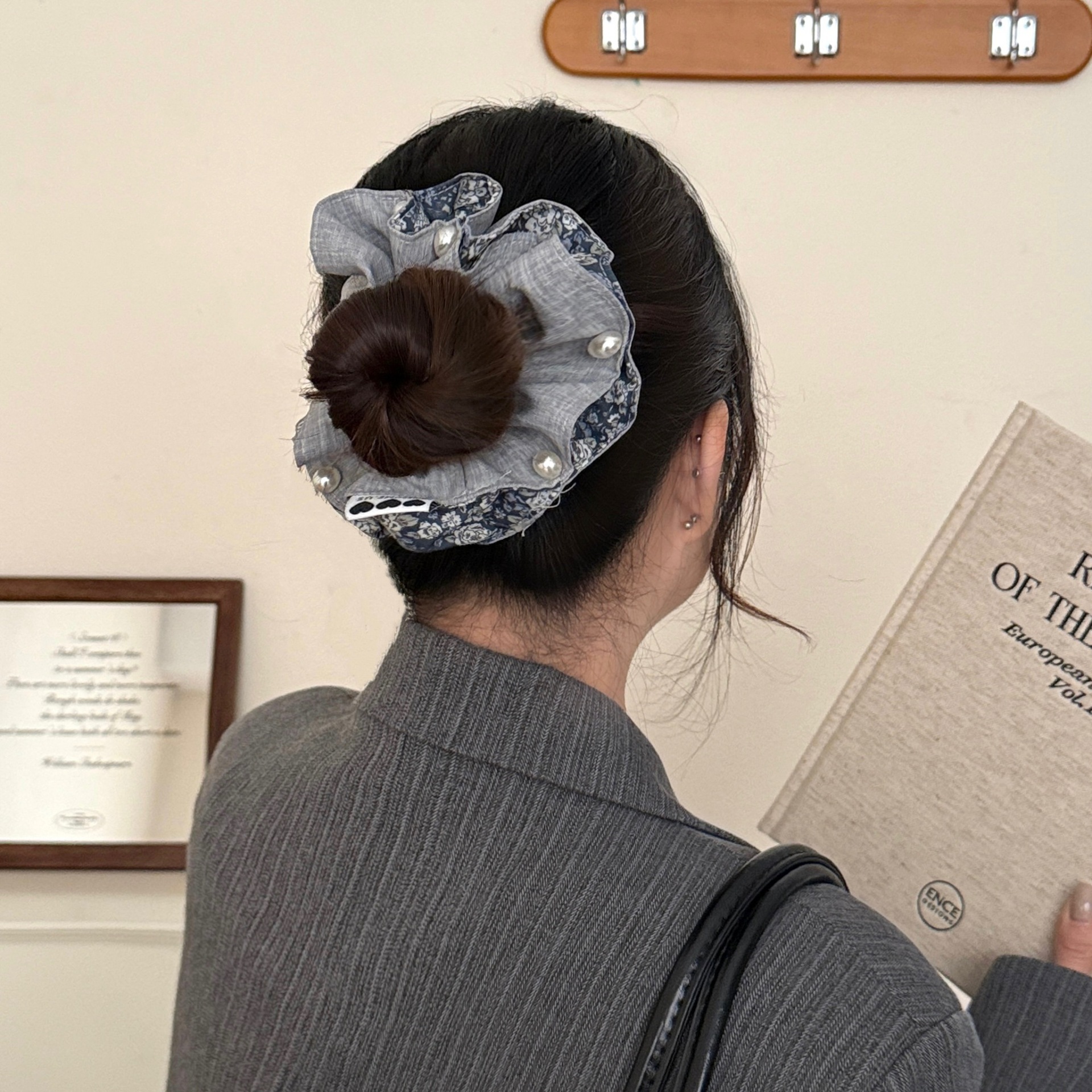 #1 double-layer pearl floral large hair tie